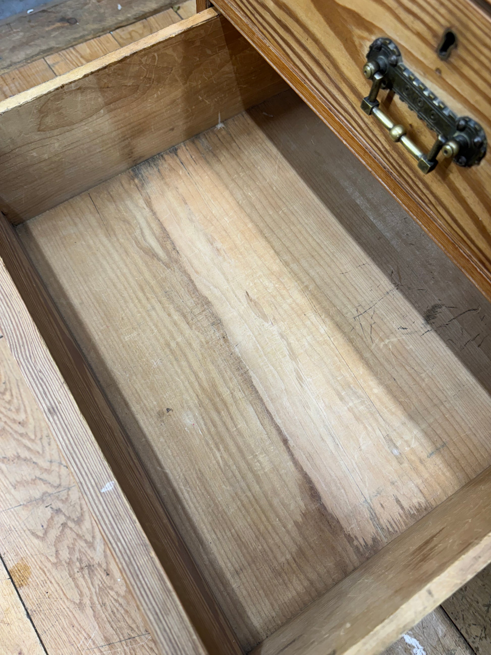 Condition report- In good/used condition. The desk bares the odd scuff and scrapes alongside the odd ink stain in the drawer. Regardless of this it’s a very large and sturdy piece with a great look.