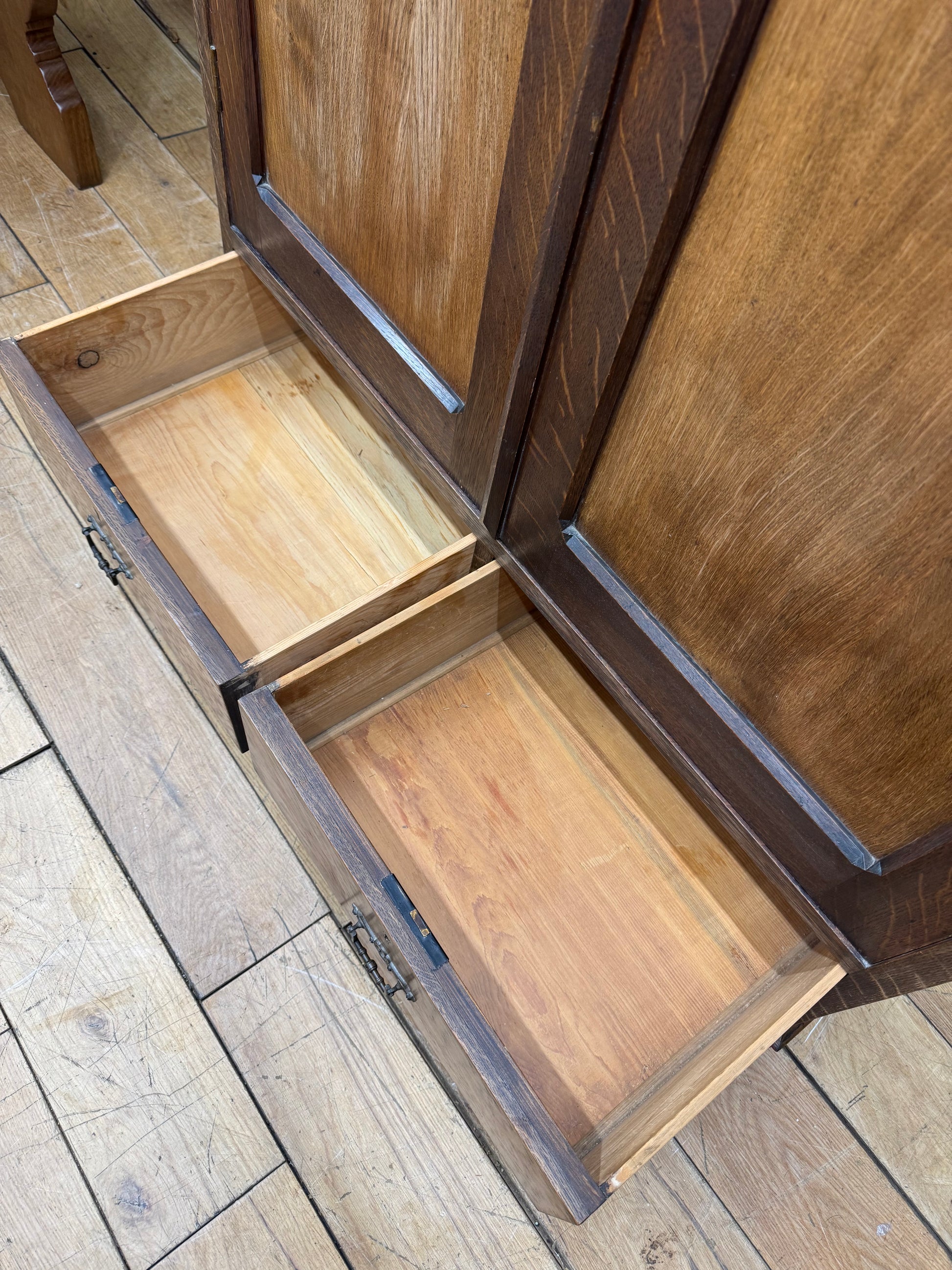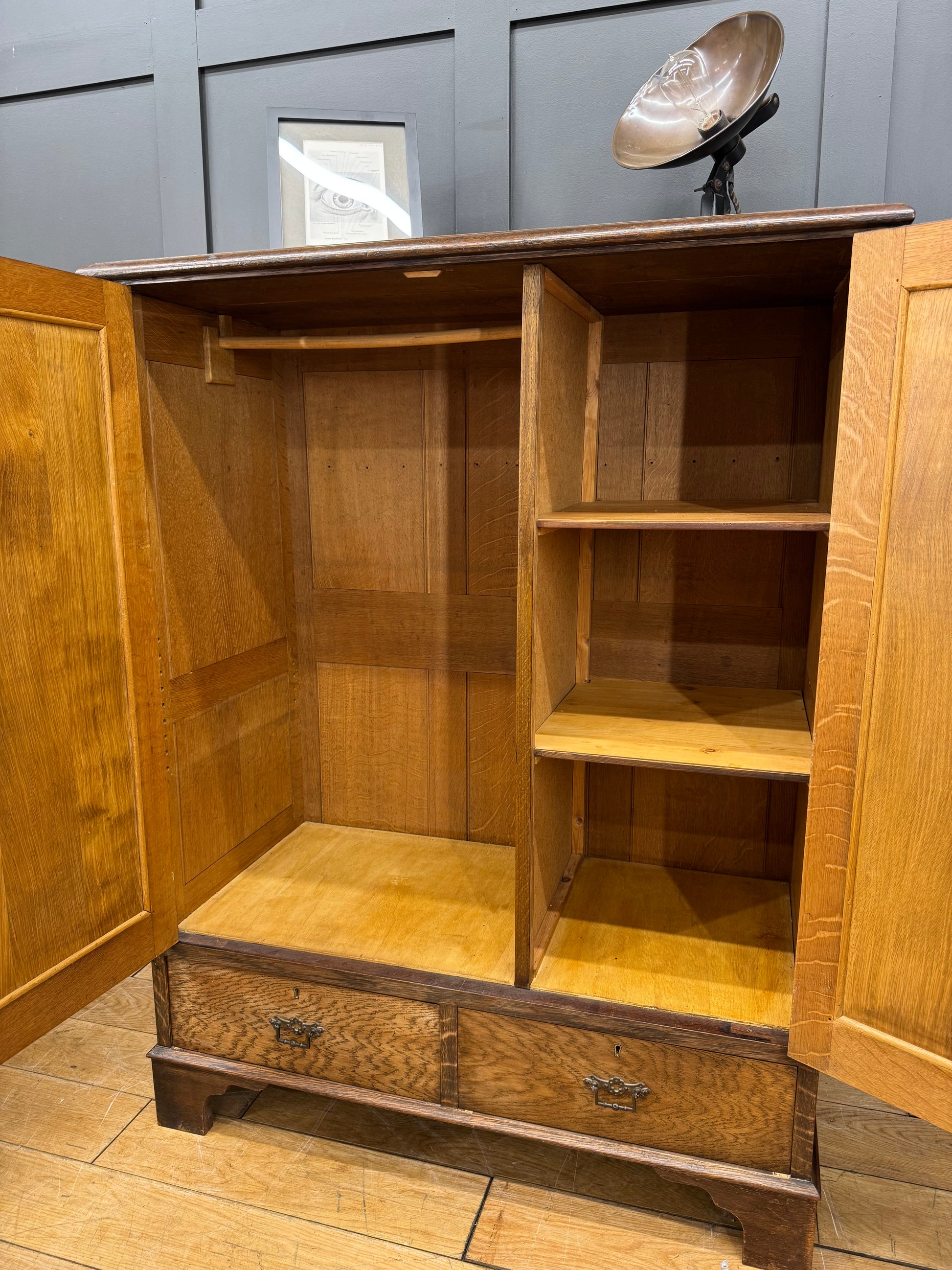 Antique Oak Compact Wardrobe – Solid English Oak Double Door Armoire with Drawers