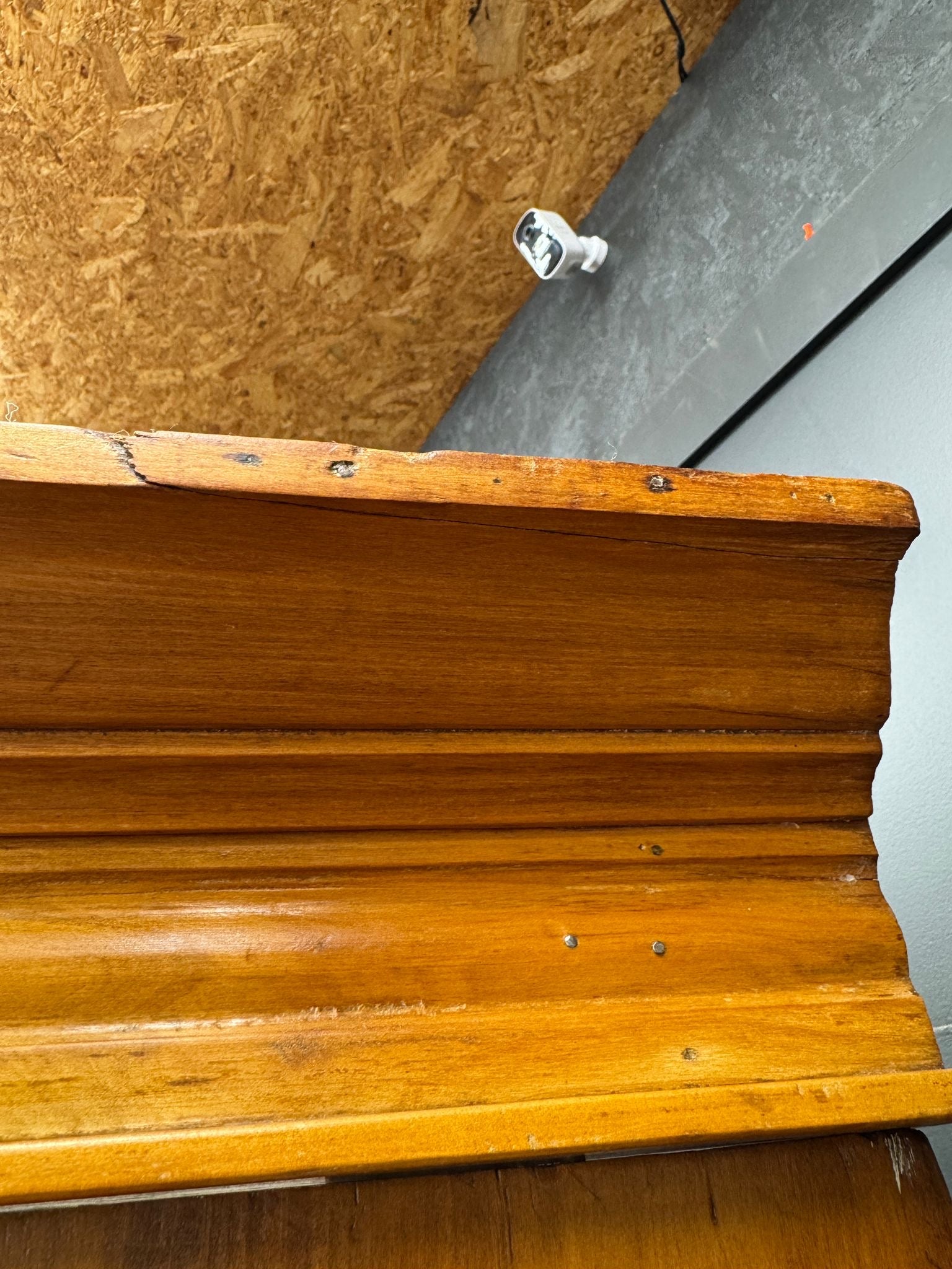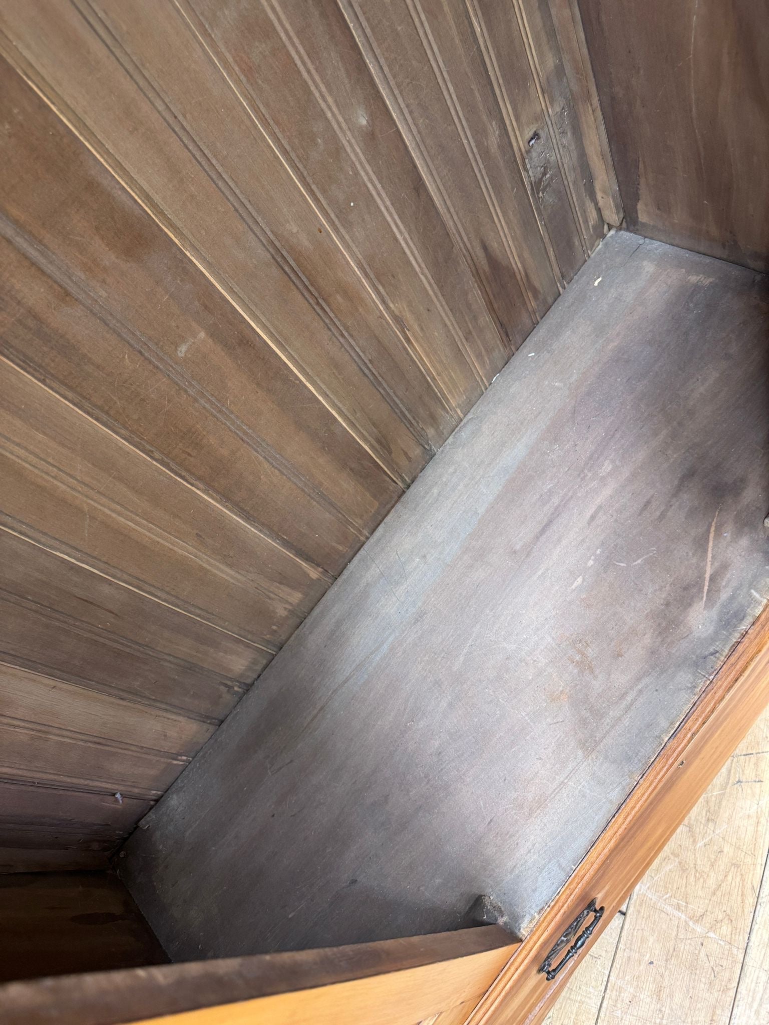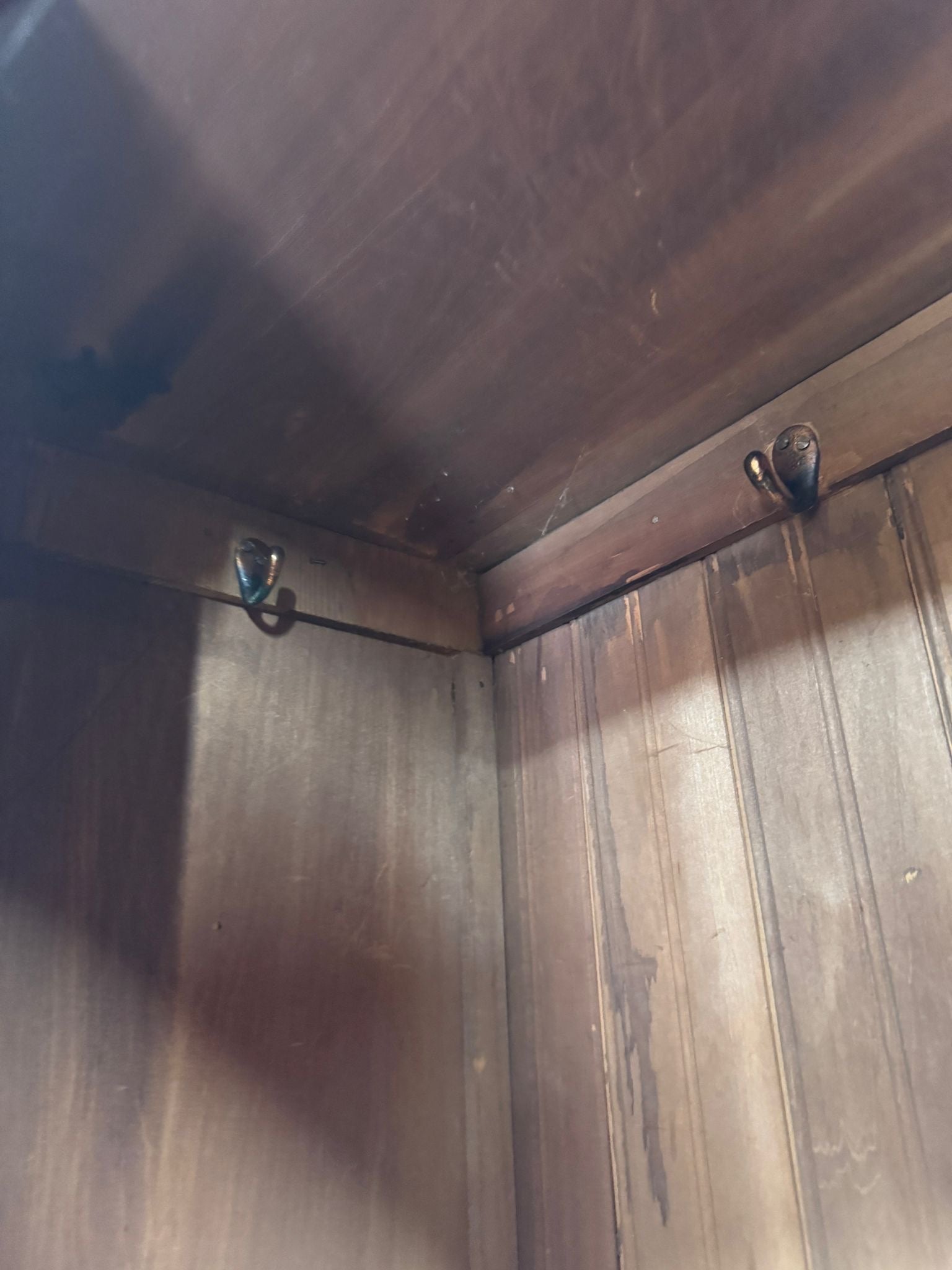 A fine antique satinwood wardrobe dating from around 1900, featuring elegant Art Nouveau carved floral panels and a central mirrored door. The golden tones and distinctive grain of satinwood bring a refined elegance, making this a statement piece for any interior. Inside, the wardrobe retains its original fitted hooks (one missing) but no hanging rail, making it particularly well-suited for use in a hallway or boot room as a stylish coat and shoe cupboard. The spacious lower drawer is ideal for footwear, scarves, or folded clothing. Decorative carved panels, quality satinwood construction, and period ironwork fittings add to the charm and authenticity of this piece, which reflects the flowing lines and craftsmanship of the Art Nouveau era. ⸻ 🔍 Condition Report: Good antique condition with expected age-related wear. Minor historic repairs to the side pelmet and to the top of the door, both solid and secure. Mirror glass shows light foxing and surface marks. General scuffs, knocks, and scratches to the woodwork, especially on mouldings and edges, in keeping with age. One interior hook missing; no hanging rail fitted. Structurally sound and ready for use. Please review all photos as they form part of the description. ⸻ 📏 Approximate Dimensions: Length: 102.5cm Width: 44.5cm Height: 193.5cm Please be aware that this item does show signs of use, which is to be expected considering its age. These signs of wear add authenticity to the item. We recommend carefully studying the pictures as they form a significant part of the description. Thank you. Feel free to explore our other available items. Our collection includes a variety of pieces ranging from rustic, antique, vintage to industrial. OUR DELIVERY SERVICE We utilize a reliable and experienced courier service for all deliveries. If you have any questions or concerns regarding delivery, please do not hesitate to contact us. Our goal is to deliver most large items within 14 days. Delivery Scheduling: The customer will be contacted by the Courier a few days before delivery to confirm the day and approximate time. Please note that all delivery prices quoted in listings are for England only. Deliveries to other areas such as Scotland, Wales and certain parts of Cornwall are subject to negotiation. Thank you. |