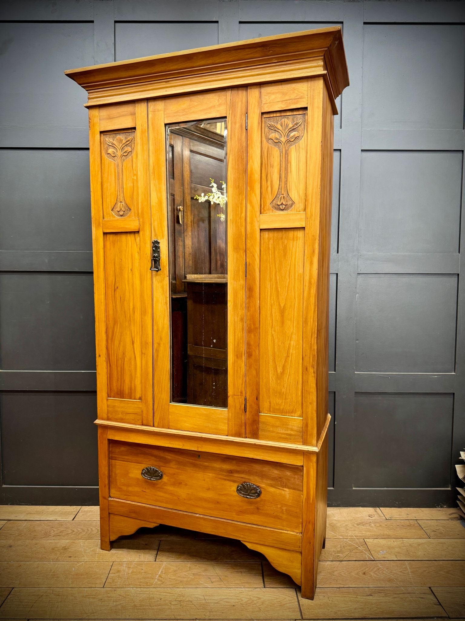 Antique Satinwood Wardrobe with Mirror Door & Drawer – Art Nouveau c1900