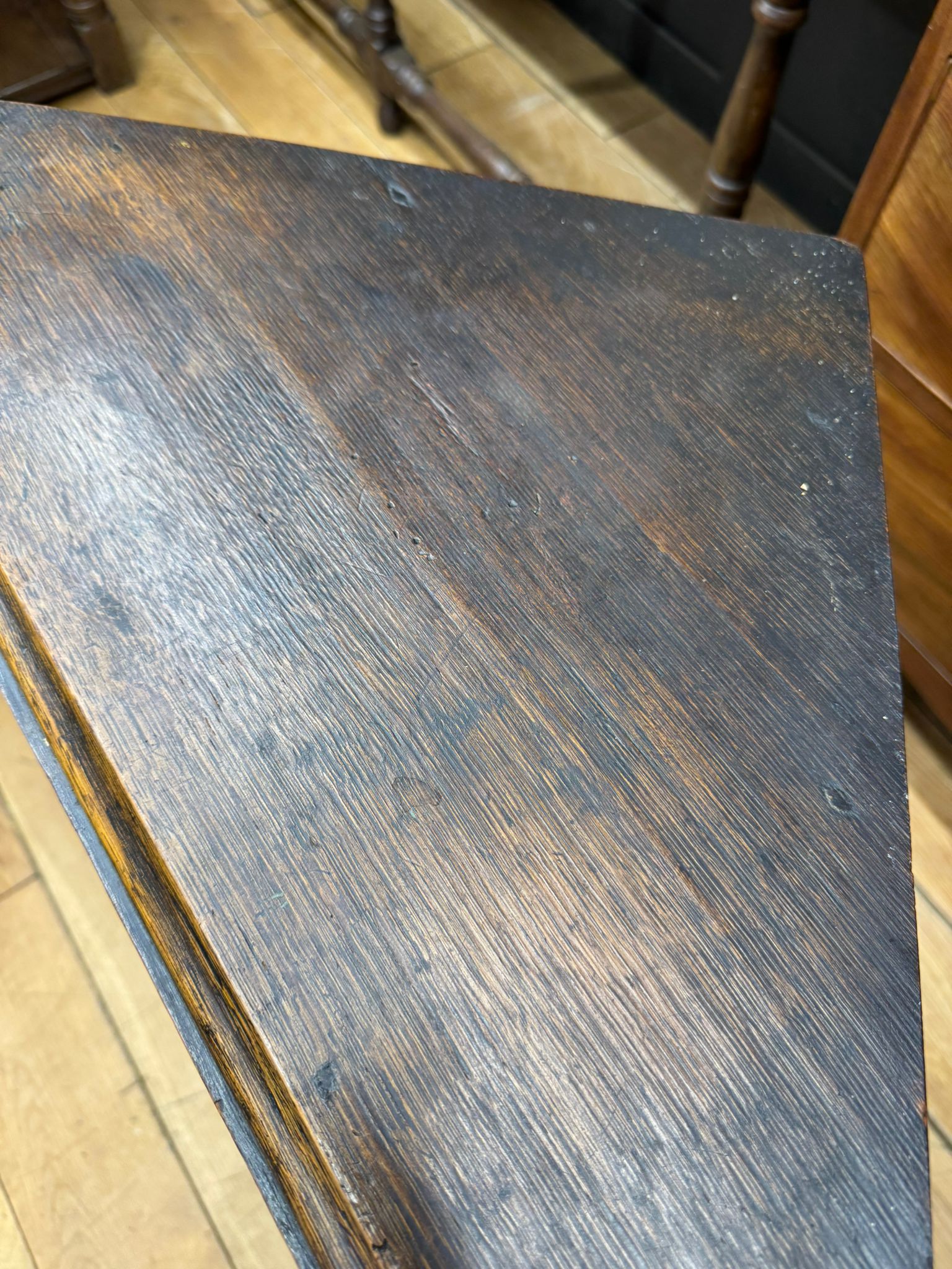 Good antique condition with light age-related marks to the top and edges, all consistent with its years of use. The door opens smoothly and closes securely. Original brass hardware present and functional.