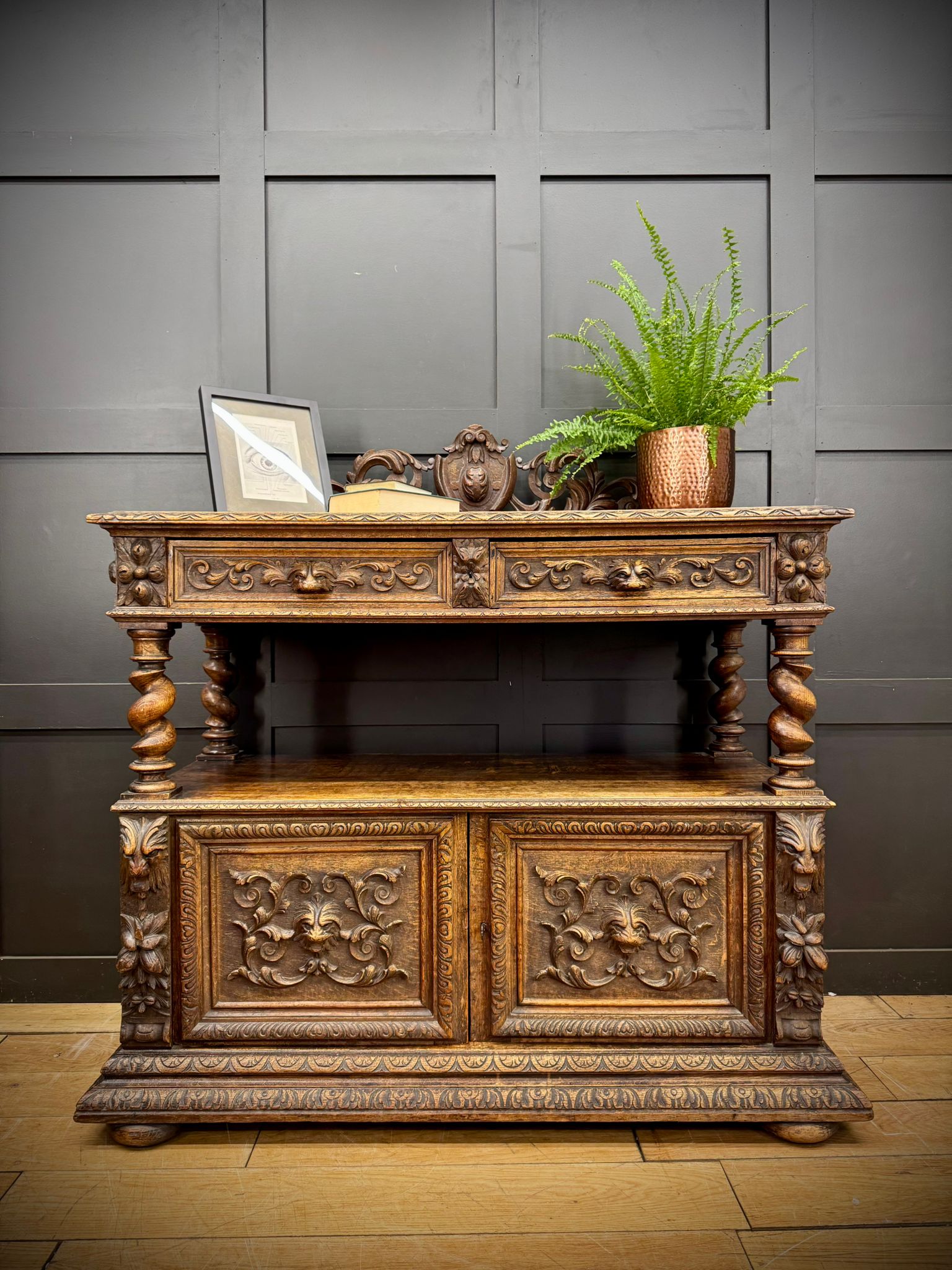 Antique Victorian Carved Oak Sideboard Buffet – Green Man / Oak Cabinet
