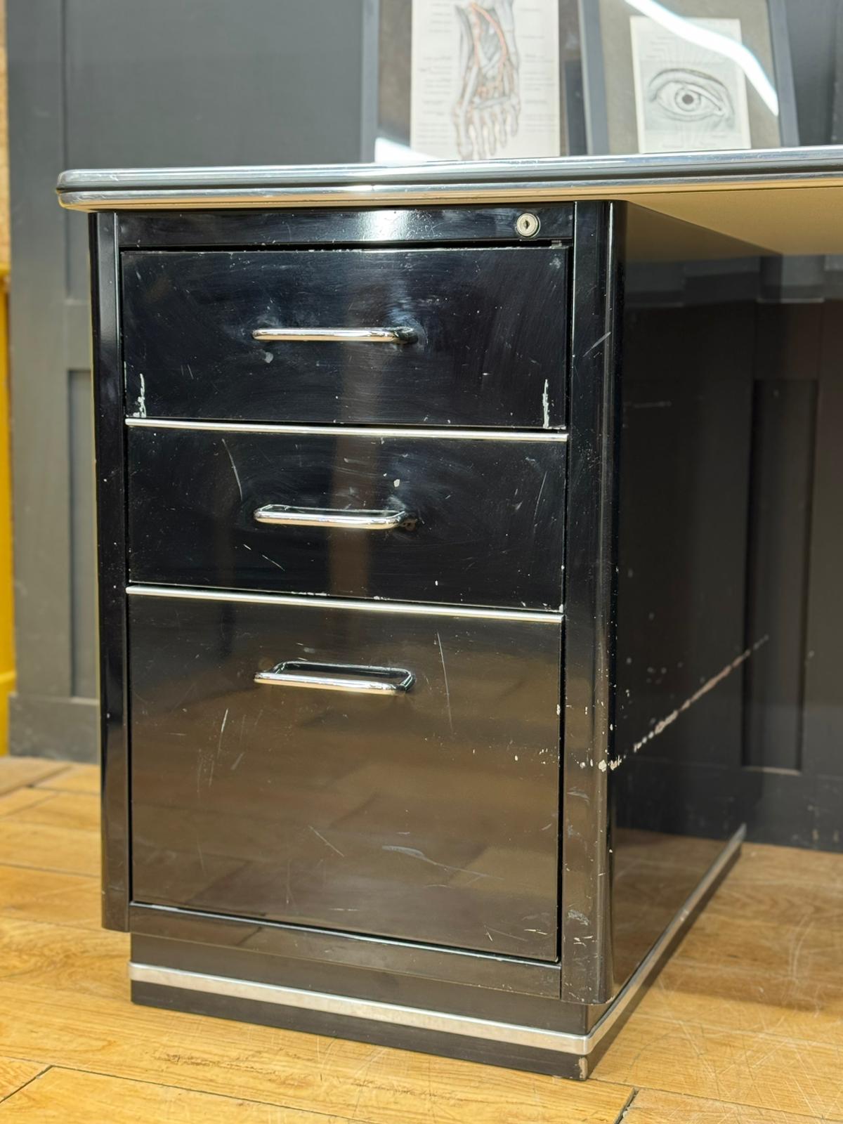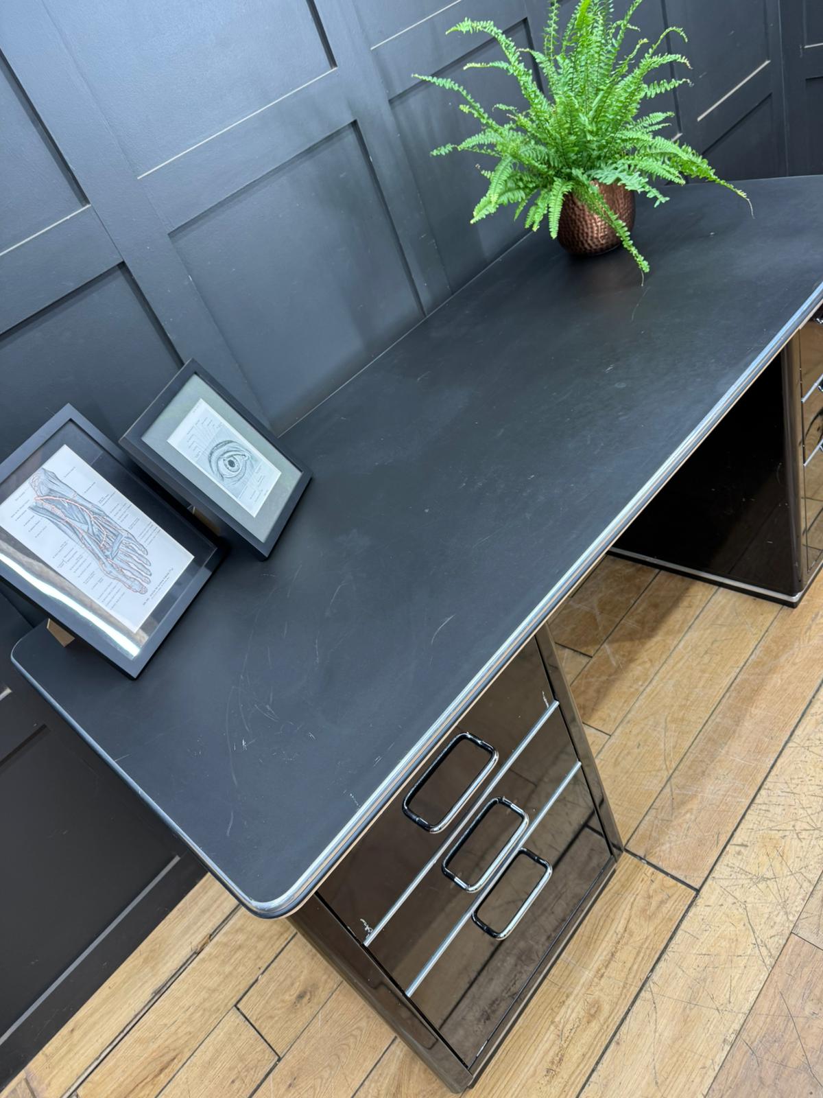 Art Deco Style Black Metal Desk / Müller Chrysler Office Twin Pedestal Desk