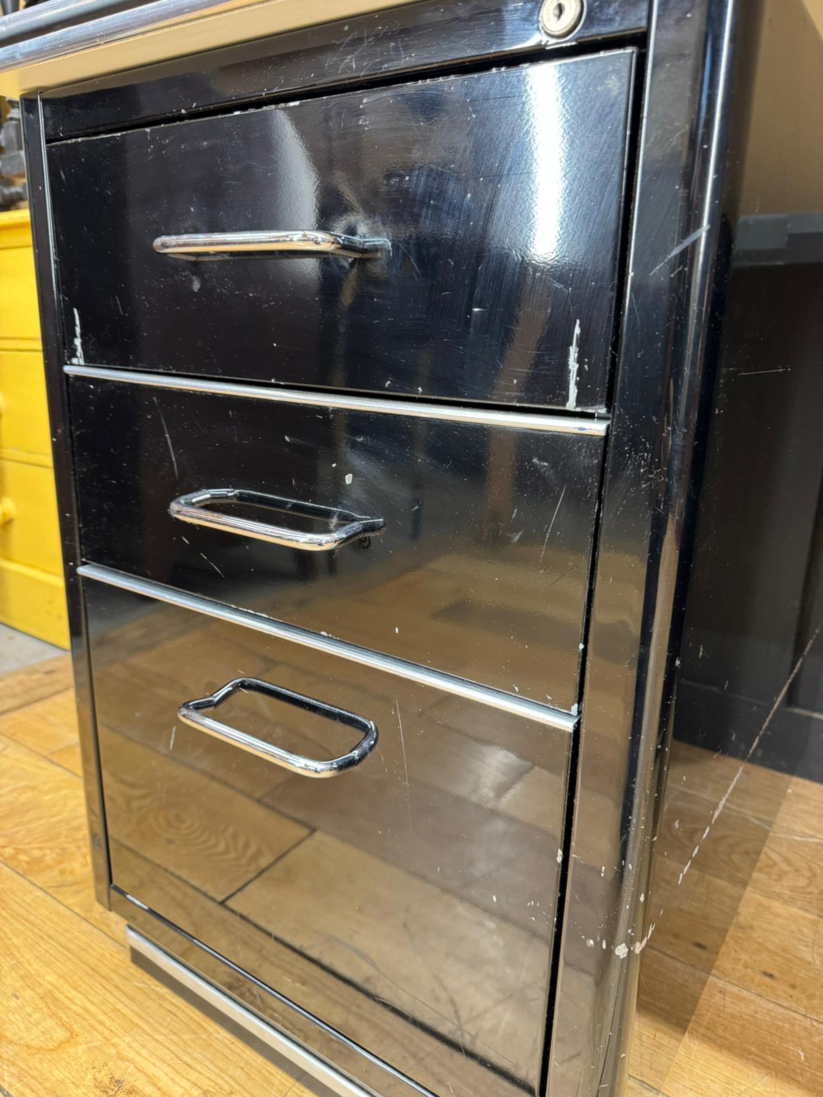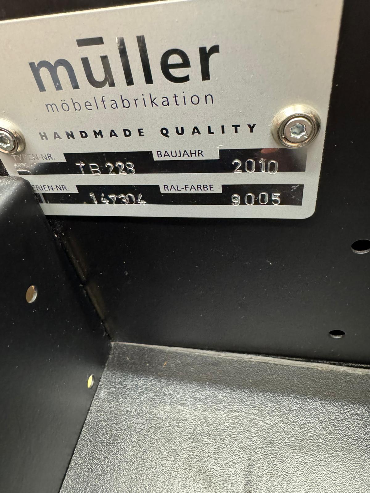 A superb Müller Möbelfabrikation TB228 ‘Chrysler’ double pedestal desk, handmade in Germany in 2010 and finished in RAL 9005 Jet Black. These desks are known for their exceptional build quality, made from hand-welded sheet steel with a sleek industrial finish and chrome trim detailing. Each drawer operates smoothly, providing generous storage, and the solid steel construction gives it real presence. Ideal for a home office, studio, or design workspace, this is a statement piece from one of Germany’s leading contemporary furniture makers. Condition Used condition with surface scratches, small paint chips and scuffs from use (see photos). Structurally very solid and all drawers run well. Signs of wear consistent with age but fully functional and beautifully engineered. Details • Maker: Müller Möbelfabrikation • Model: TB228 • Year (Baujahr): 2010 • Colour (RAL-Farbe): 9005 Jet Black • Handmade in Germany Approximate dimensions: Length 176cm Width 81cm Height 77.5cm Please be aware that this item does show signs of use, which is to be expected considering its age. These signs of wear add authenticity to the item. We recommend carefully studying the pictures as they form a significant part of the description. Thank you. Feel free to explore our other available items. Our collection includes a variety of pieces ranging from rustic, antique, vintage to industrial. OUR DELIVERY SERVICE We utilize a reliable and experienced courier service for all deliveries. If you have any questions or concerns regarding delivery, please do not hesitate to contact us. Our goal is to deliver most large items within 14 days. Delivery Scheduling: The customer will be contacted by the Courier a few days before delivery to confirm the day and approximate time. Please note that all delivery prices quoted in listings are for England only. Deliveries to other areas such as Scotland, Wales and certain parts of Cornwall are subject to negotiation. Thank you.  |
