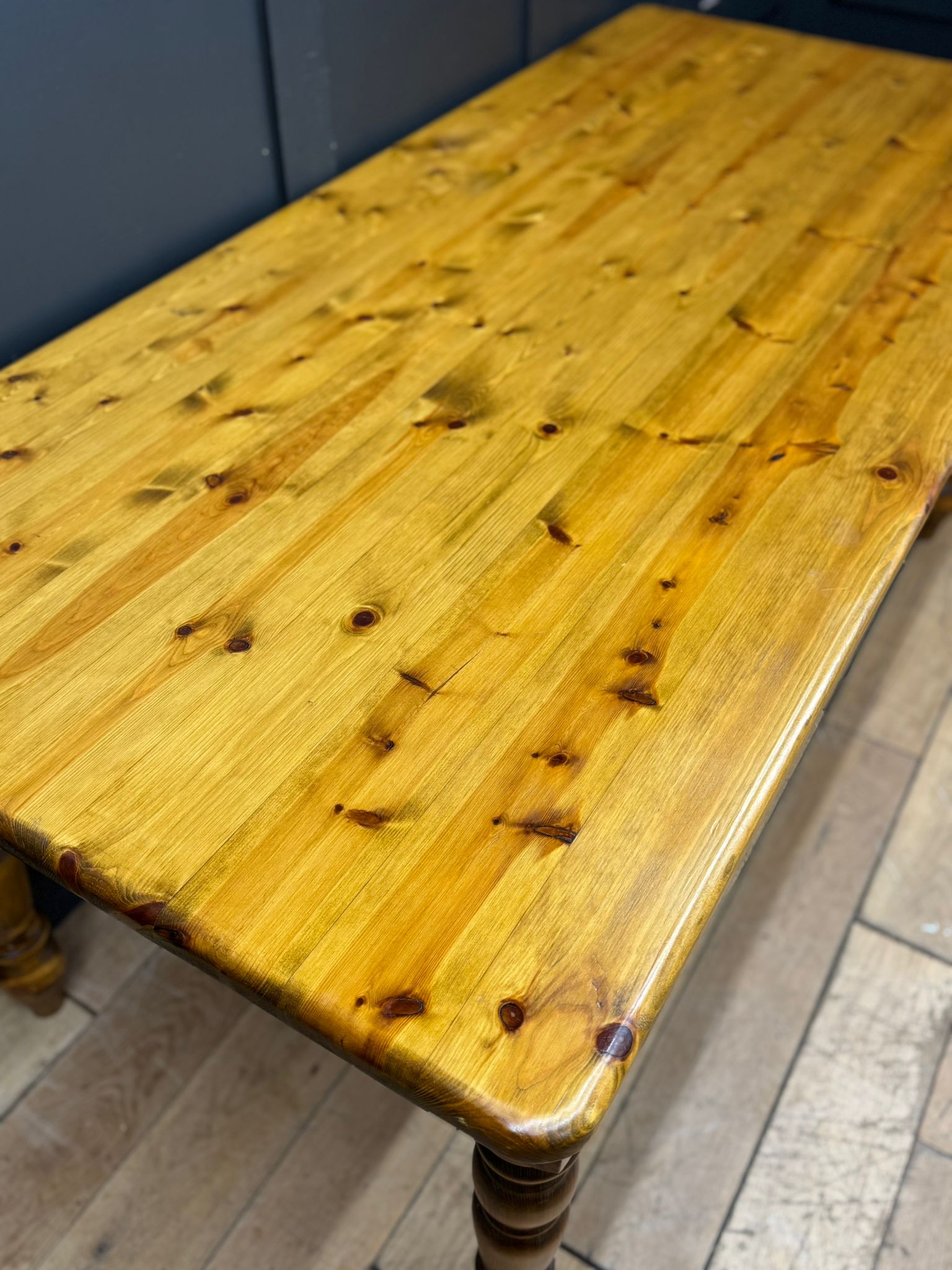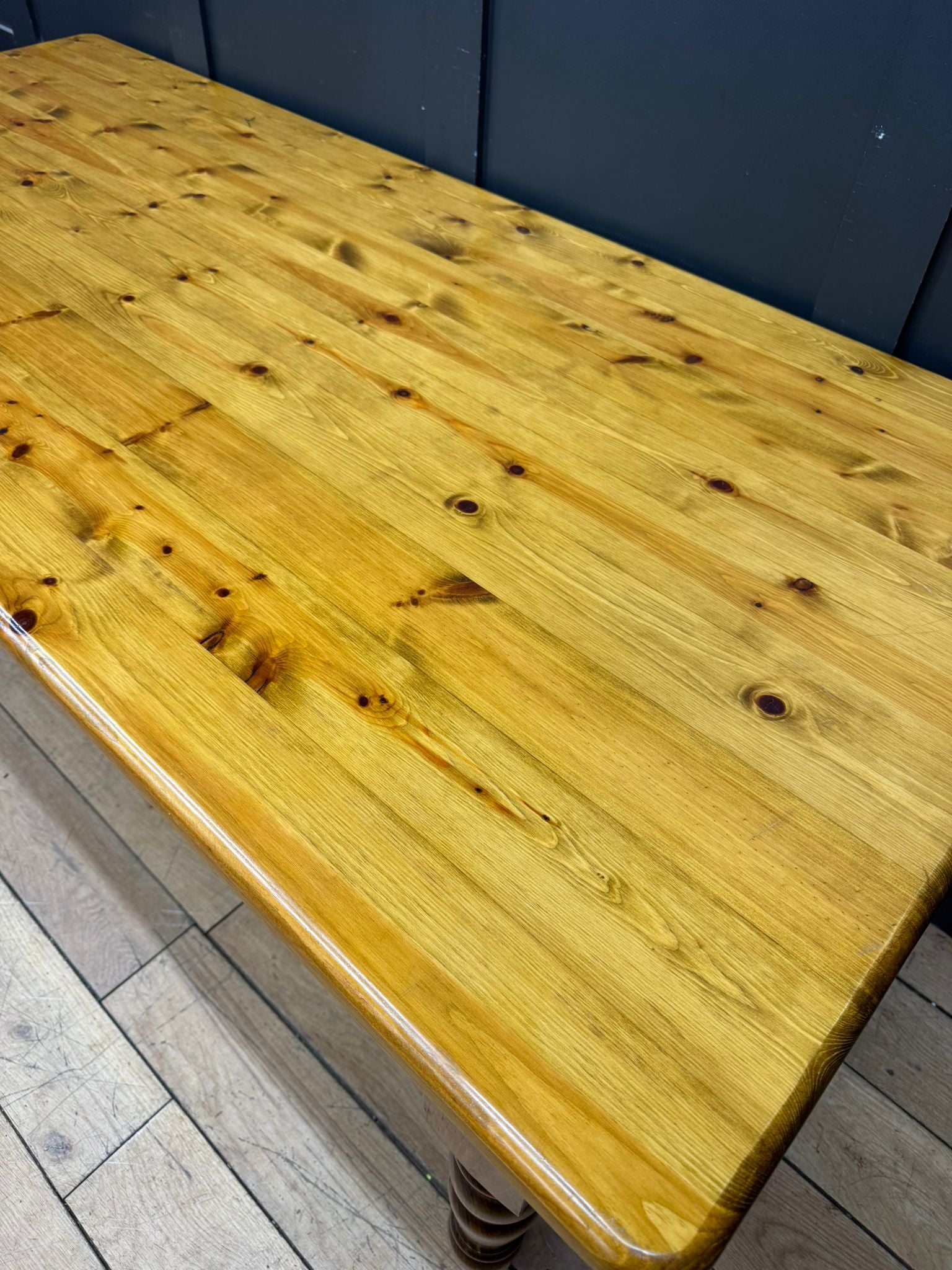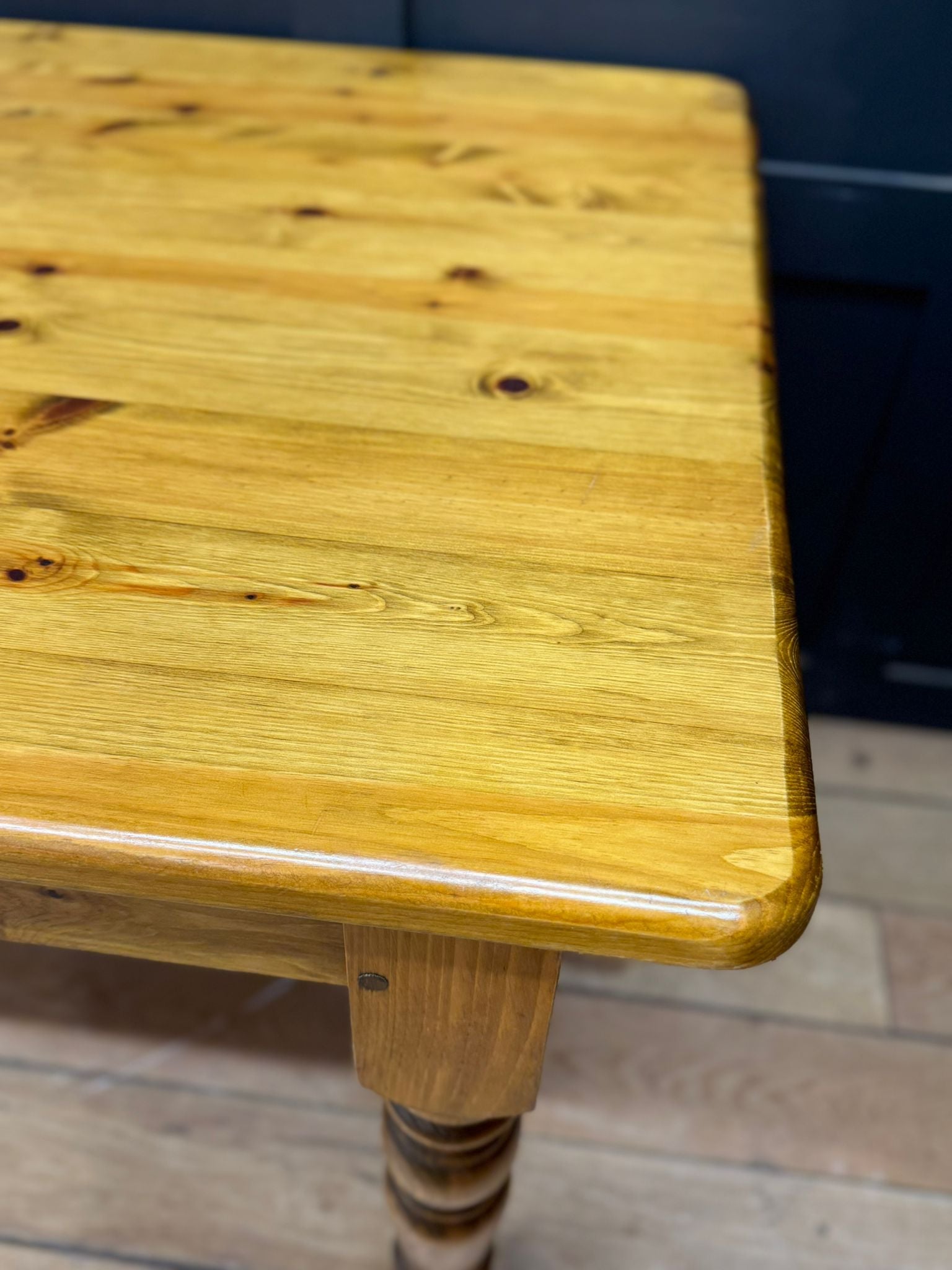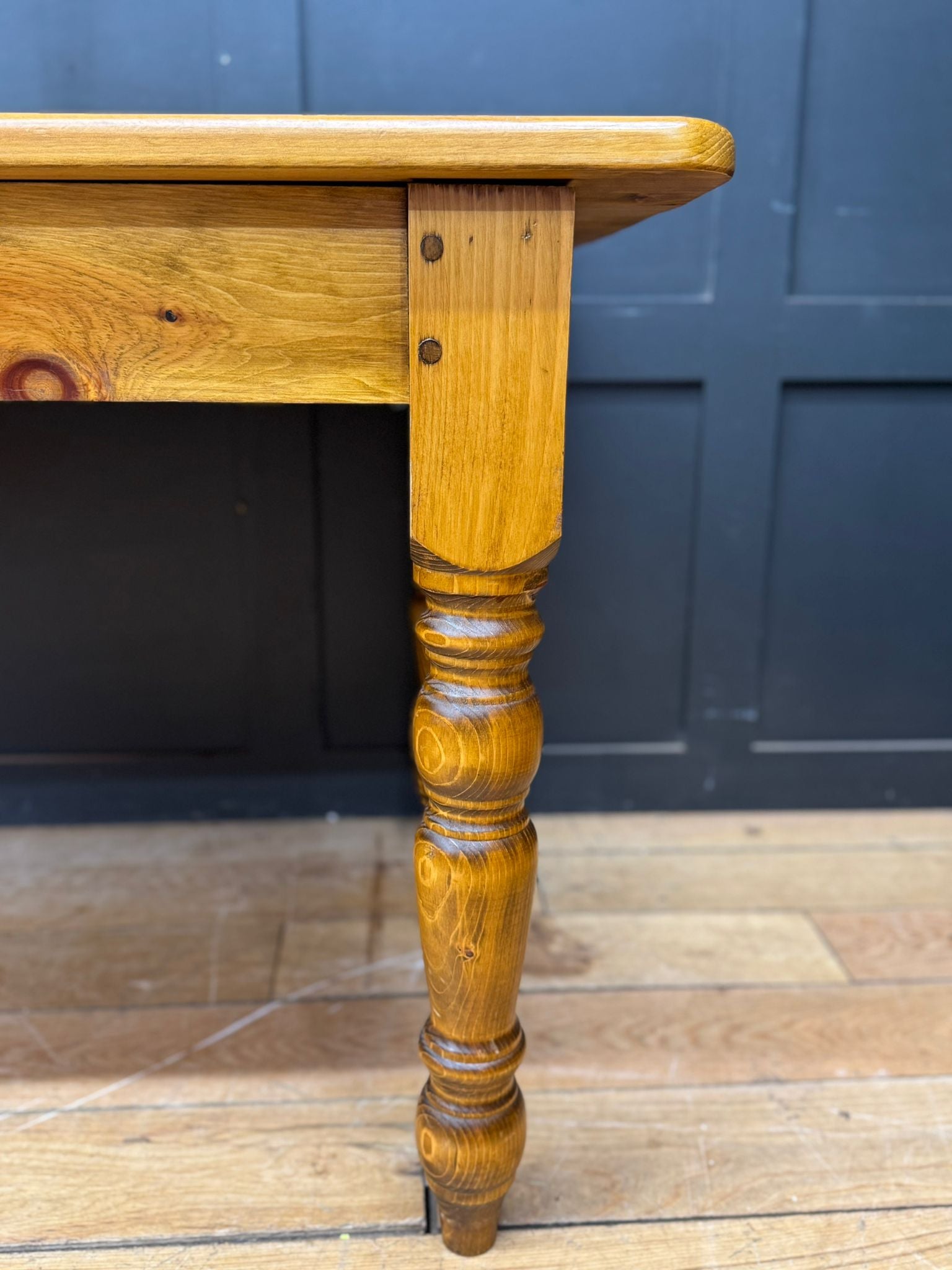 Turned legs add a traditional country feel, making this a great fit for farmhouse, cottage or relaxed modern interiors. Big enough for family dinners, gatherings, or just spreading life out across it.