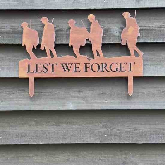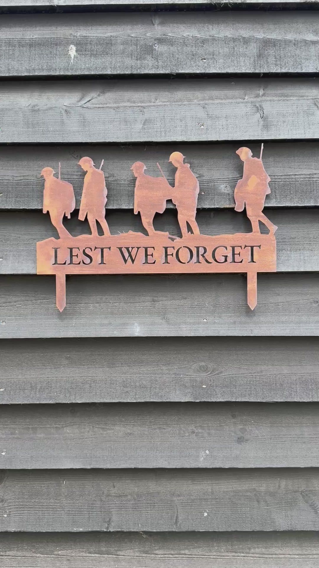 A Rusty Metal Lest We Forget Soldier Scene Garden Decoration