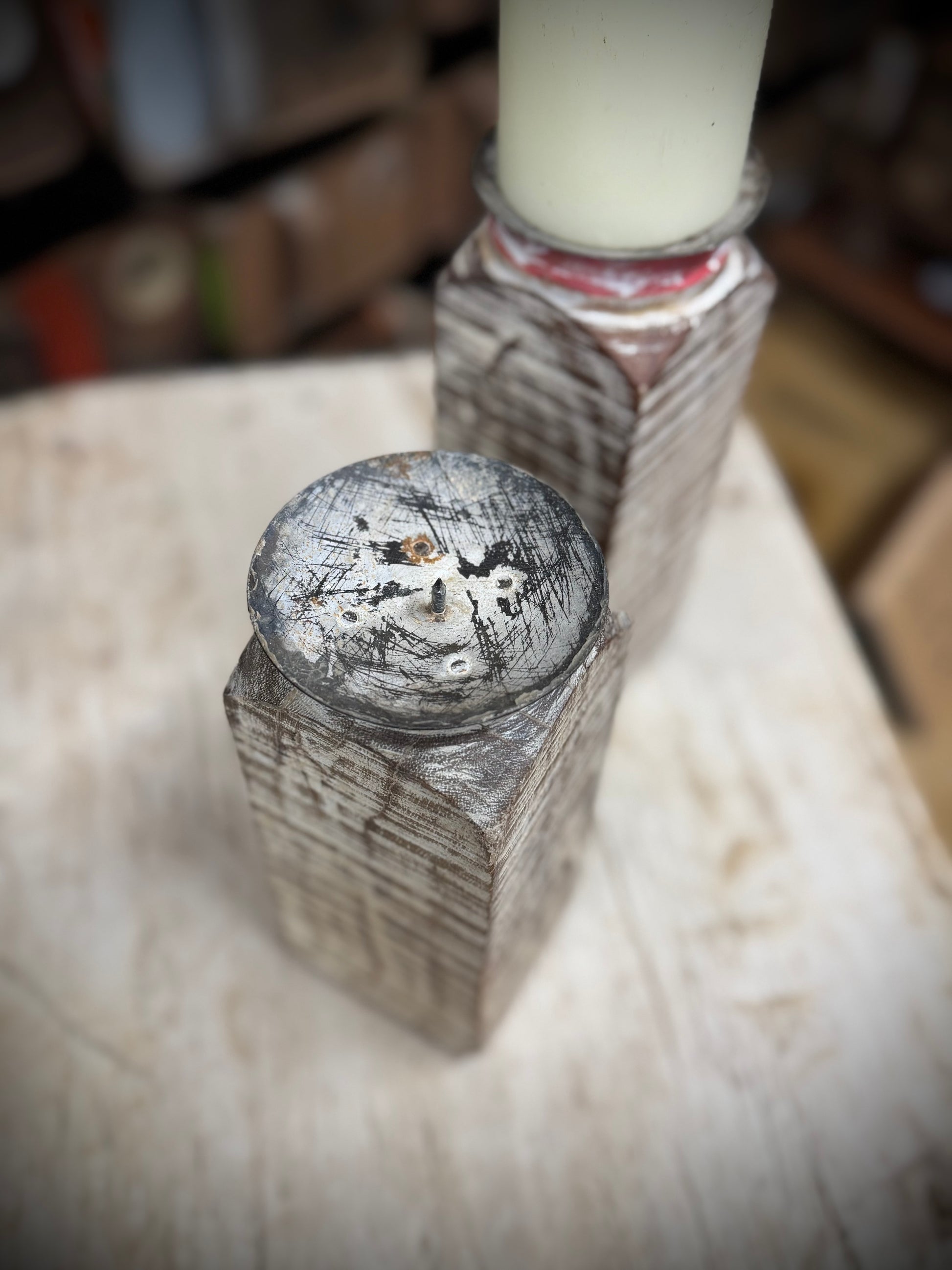Pair Of Rustic Wooden Candle Holders / Large Church Candle Candlesticks /C