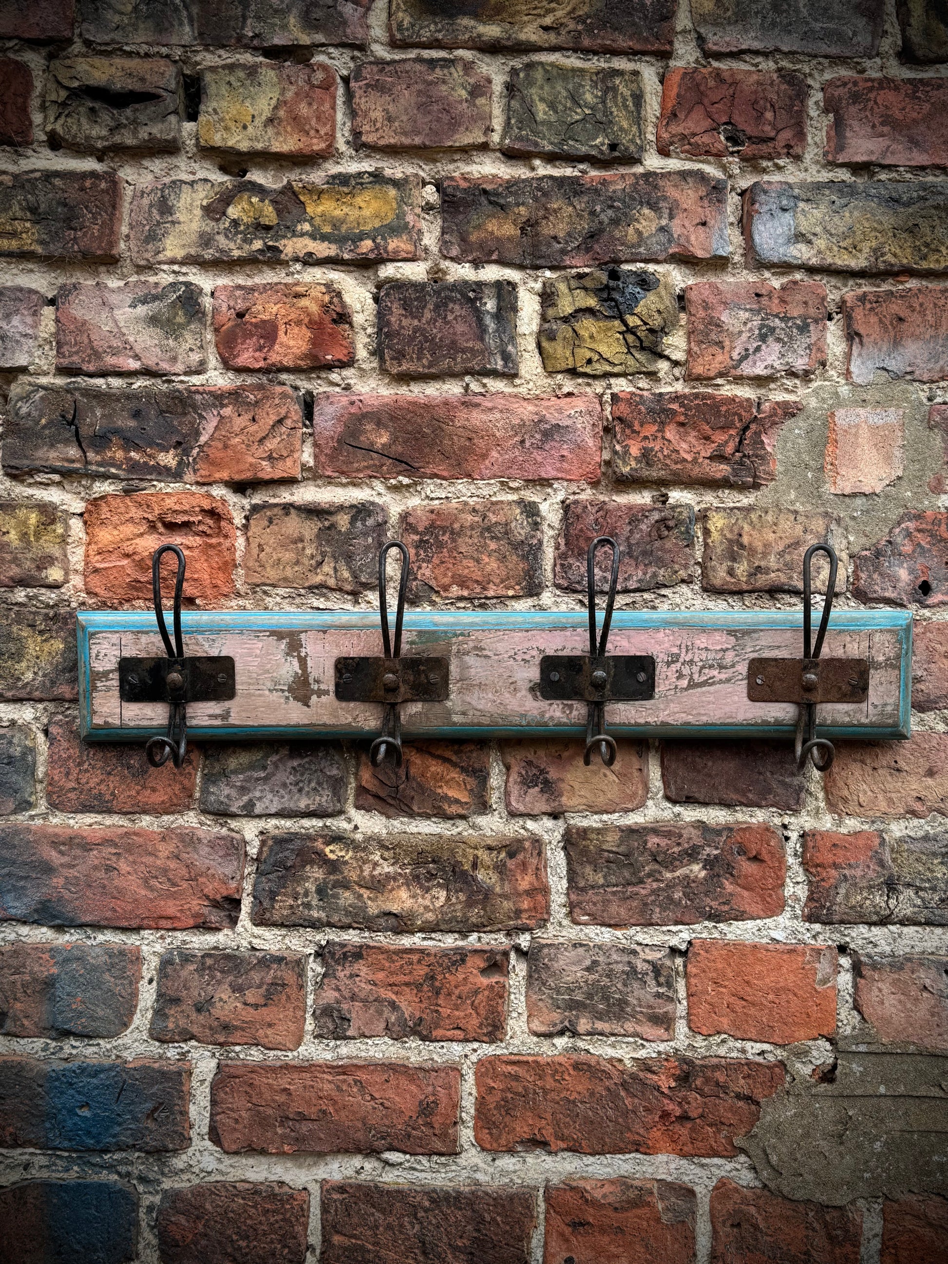 Made from reclaimed timber with a rustic appearance. Four hooks offering generous hanging space. Fixings to the back for mounting.