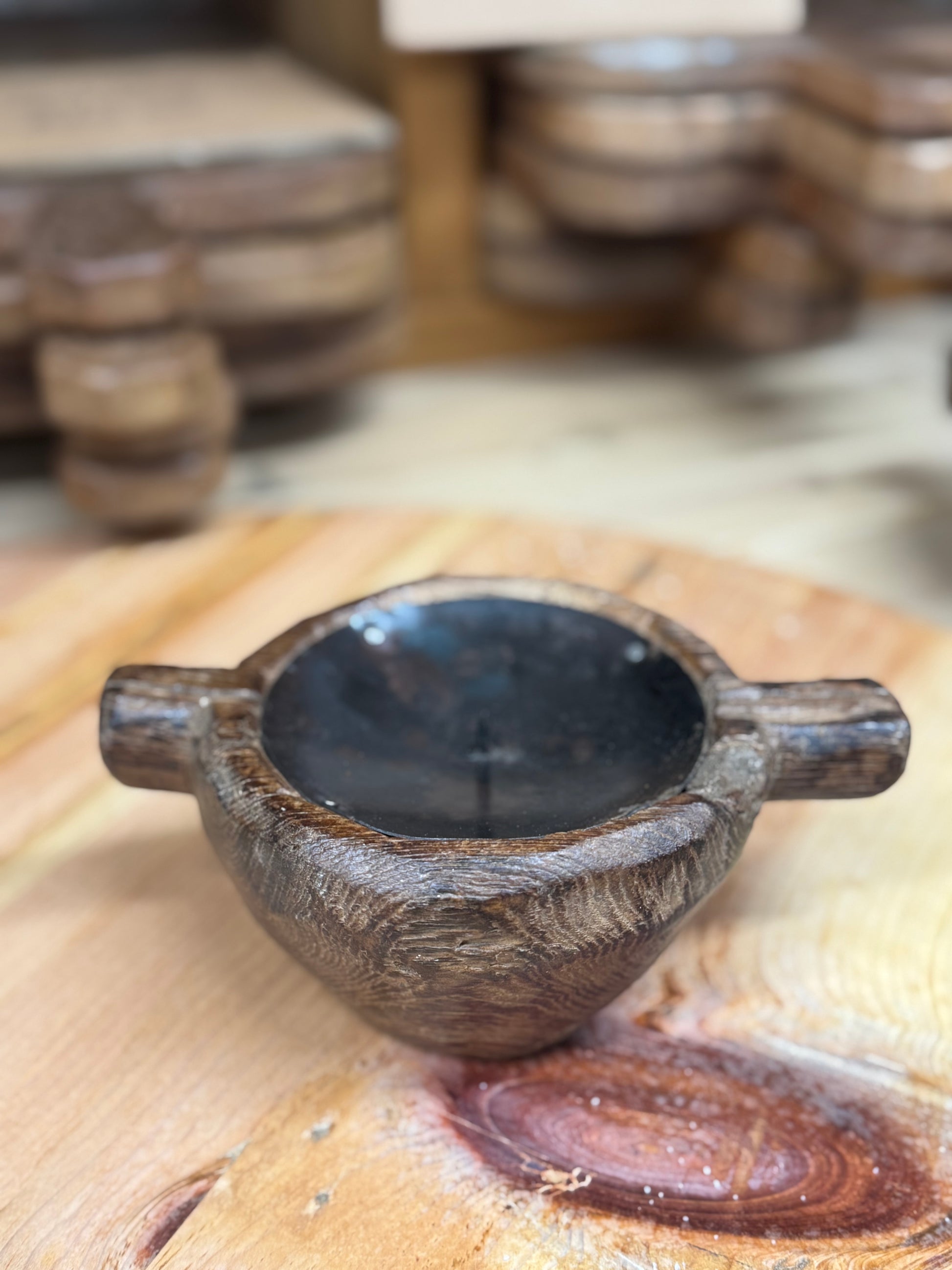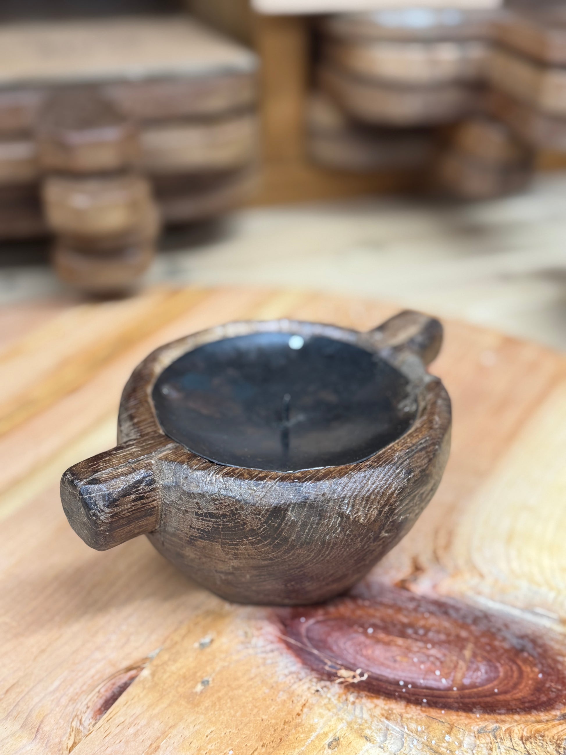 Add a touch of vintage charm to your home with this unique antique style candle holder. Crafted from solid reclaimed wood in a rustic finish, this piece is solid and heavy, showcasing the craftsmanship of recycled antique furniture or antique spice scoops. The aged wood exudes character and history, making it a truly special addition to any space. Originating from India, this candle holder is not just functional but also a statement piece that will enhance the ambiance of your home.