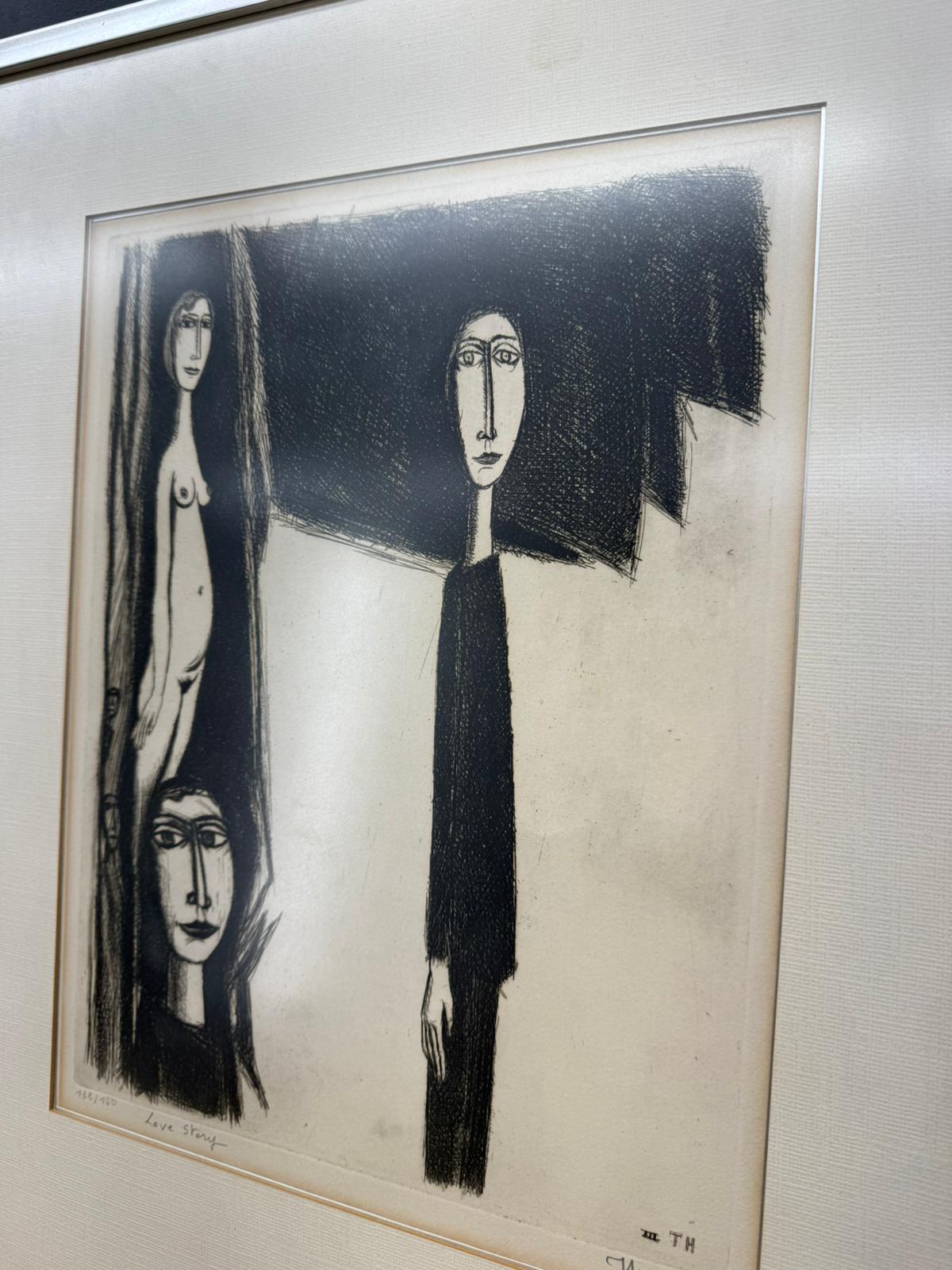 A striking limited edition modernist picture titled “Love Story” by Theo Humblet, signed and numbered 132/150. Theo Humblet is known for his expressive, graphic style with elongated figures and strong emotional presence, very much rooted in mid-century European modernism. This piece has real visual impact, bold, moody and quietly powerful. Presented in a brushed aluminium frame with wide mount, which suits the work perfectly and allows it to work effortlessly in both modern and eclectic interiors. This is an original limited edition picture, signed by the artist, not a reproduction or poster. Condition Very good overall condition. • Picture clean with no tears or damage • Light age toning consistent with age • Frame shows minor surface marks and small dings (see photos) • Ready to hang All wear is honest and visible. Approximate Dimensions • Height: 67 cm • Width: 51.5 cm • Depth: 3 cm Please be aware that this item show signs of use but that is to be expected considering its age and does add authenticity to the item. Please make sure you study the pictures as these go to making up a large part of the description. Many thanks. Please take a look at our other items that we have available, we offer a large and varied selection of metal decor items, rustic, antique, vintage and industrial pieces of furniture. We offer nationwide delivery on all our items. Please note that all delivery prices quoted are for the UK mainland only. We do combine postage. Just add the items to your basket and it will automatically discount the postage costs. |