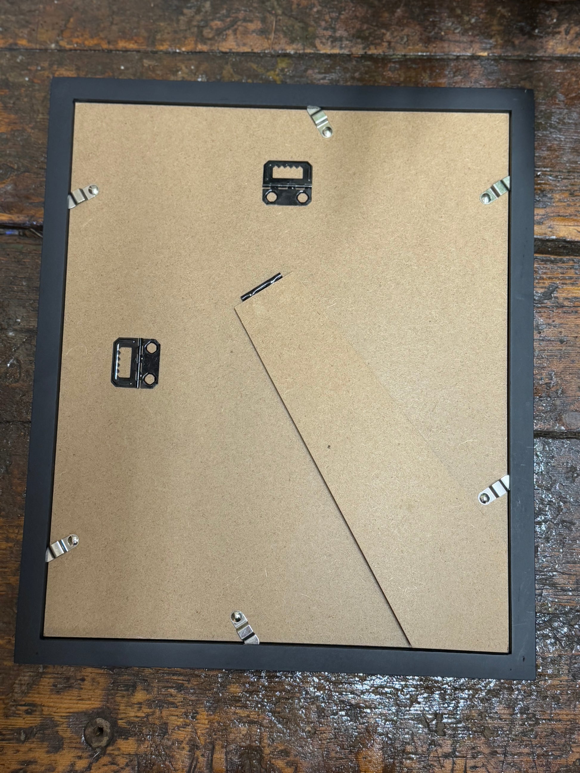 Presented in a modern black mount frame with Perspex front. Can be stood like a photo frame or hung on a wall.