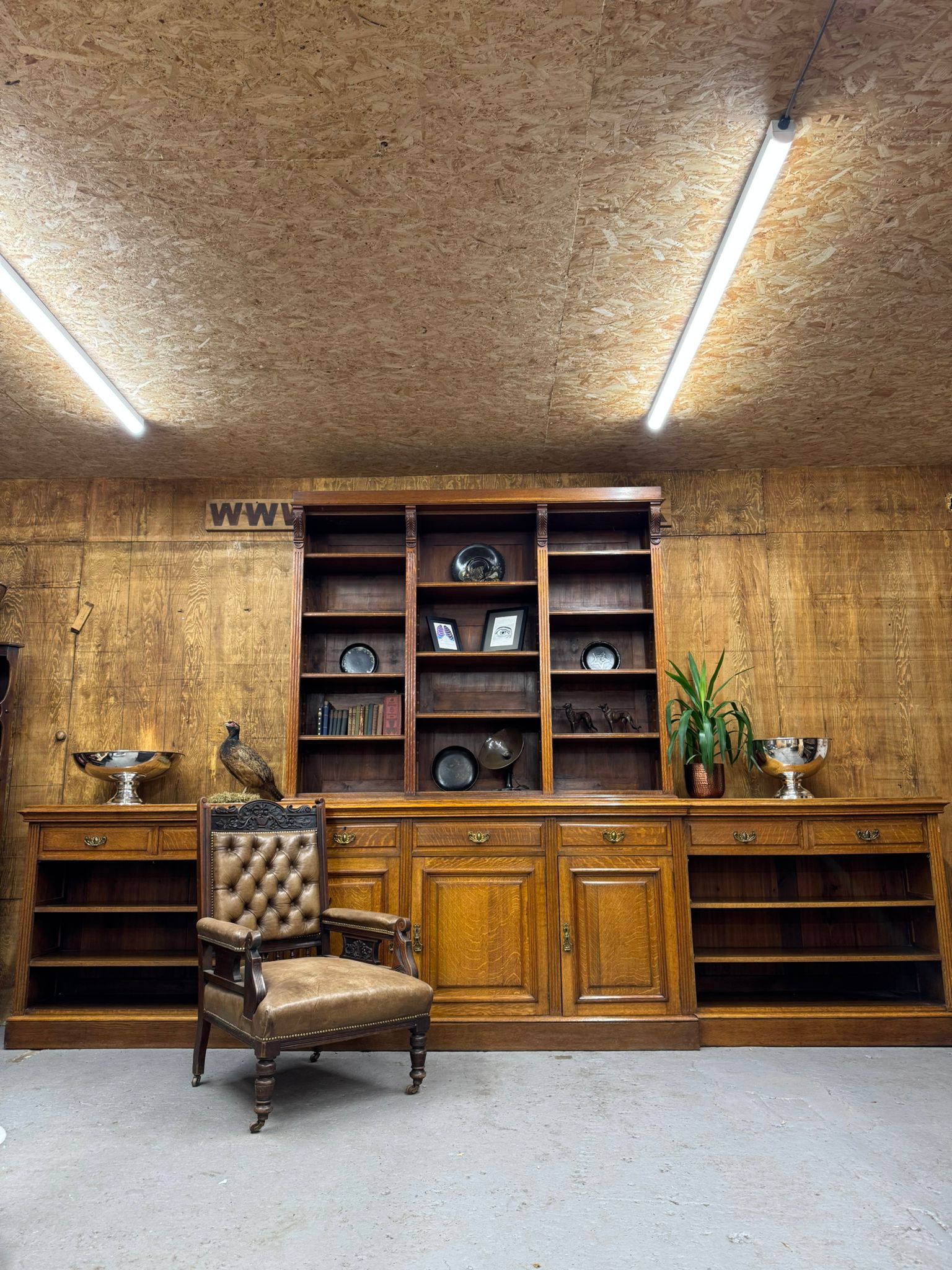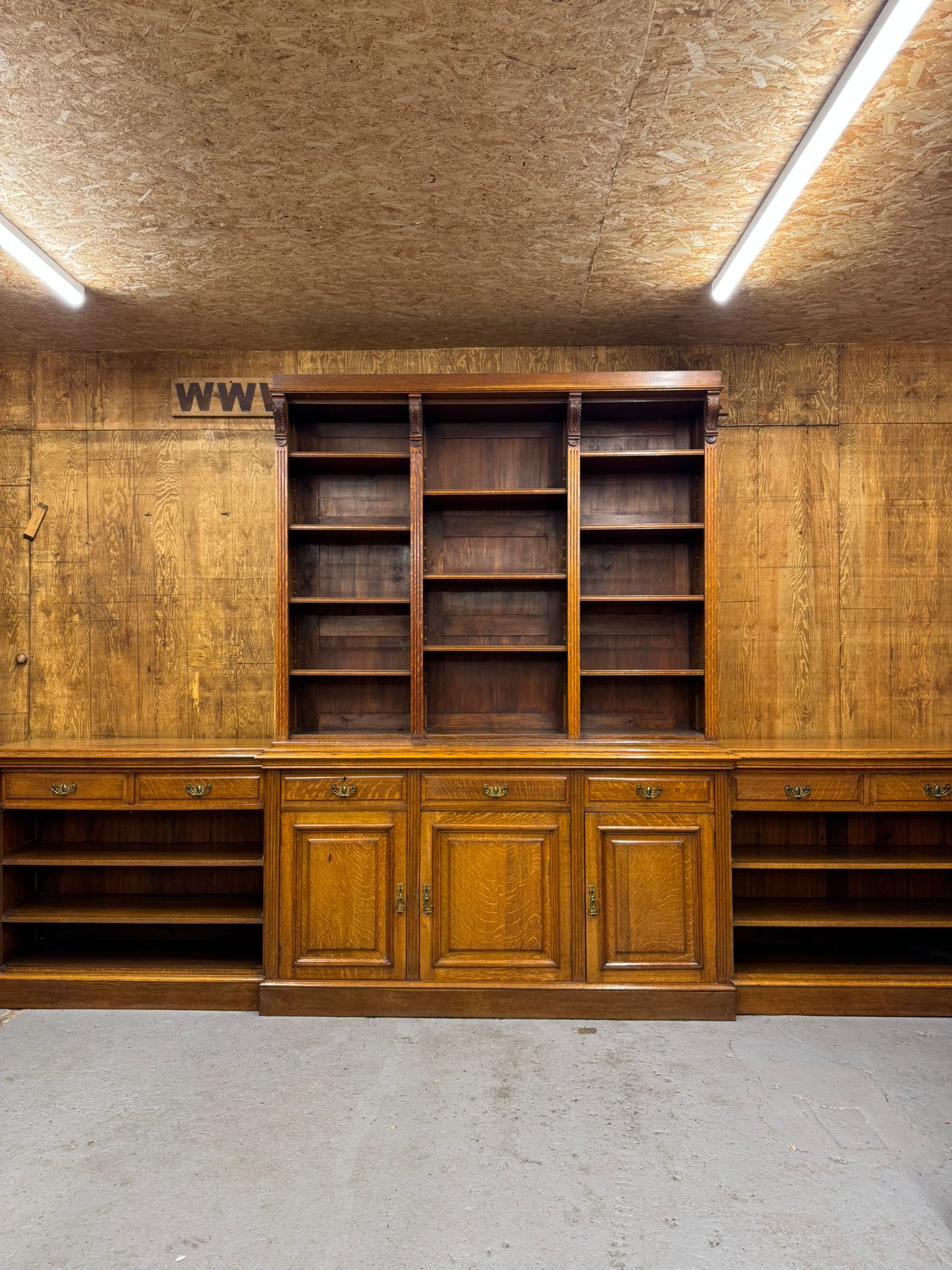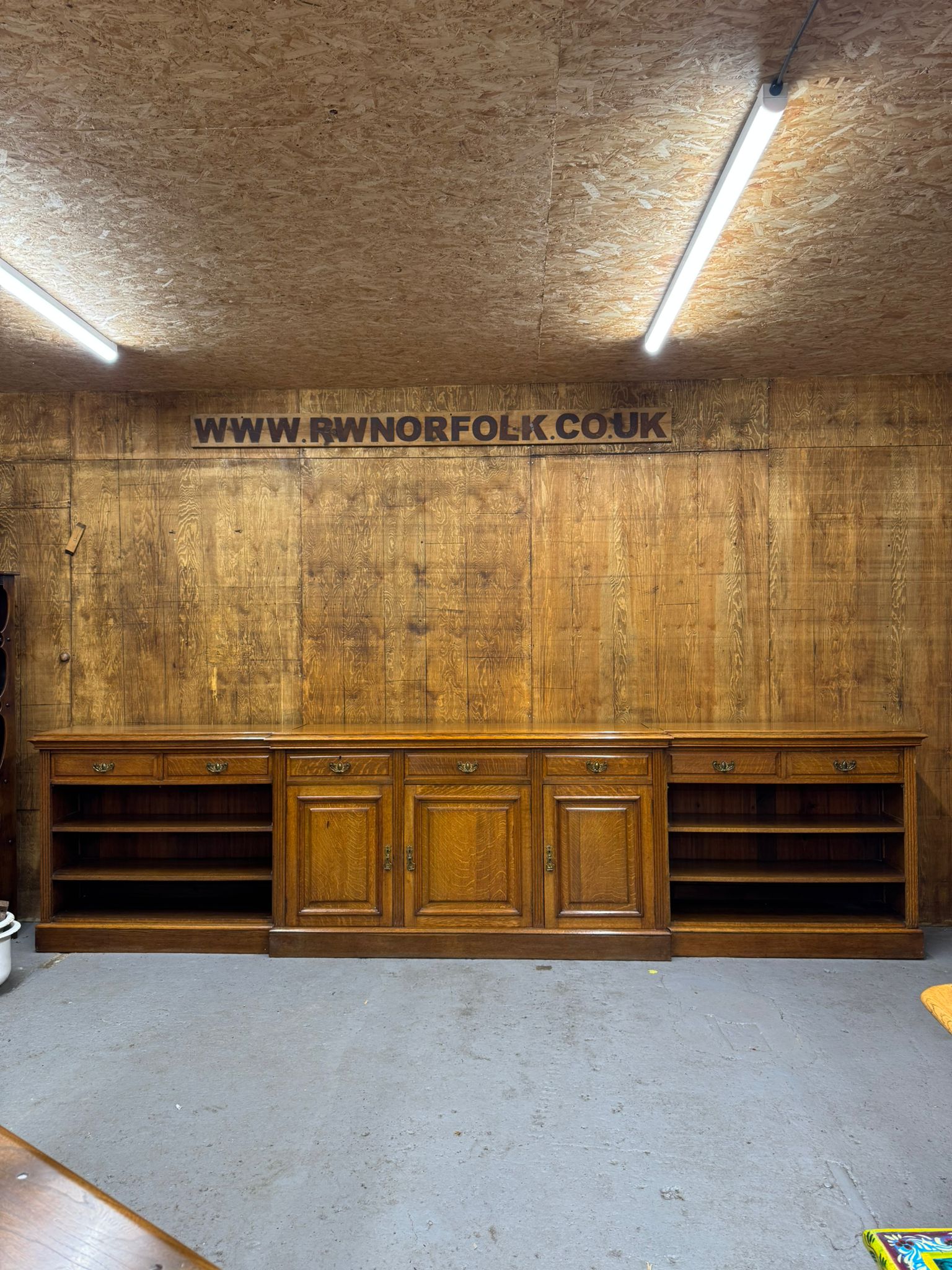 Victorian Solid Oak Breakfront Library Bookcase, TV Stand, Sideboard Display