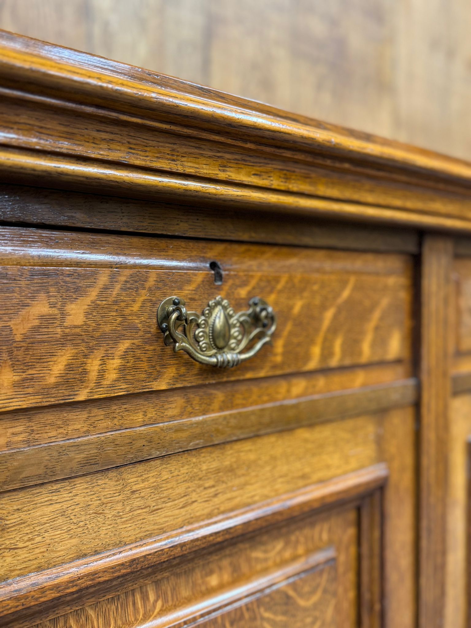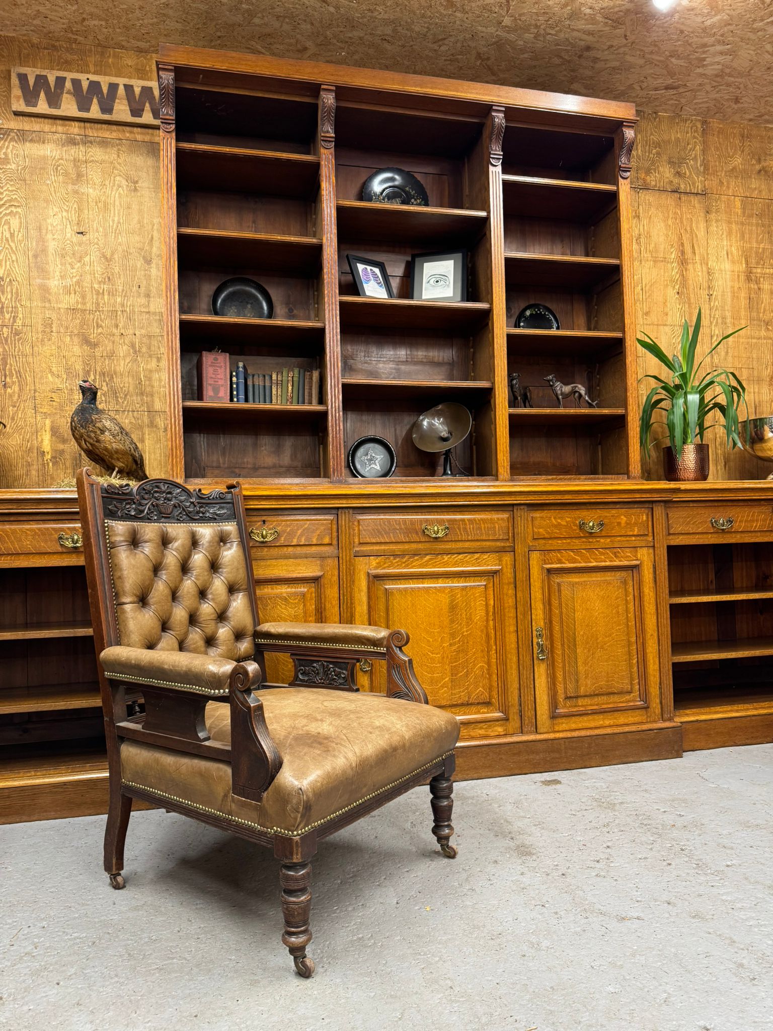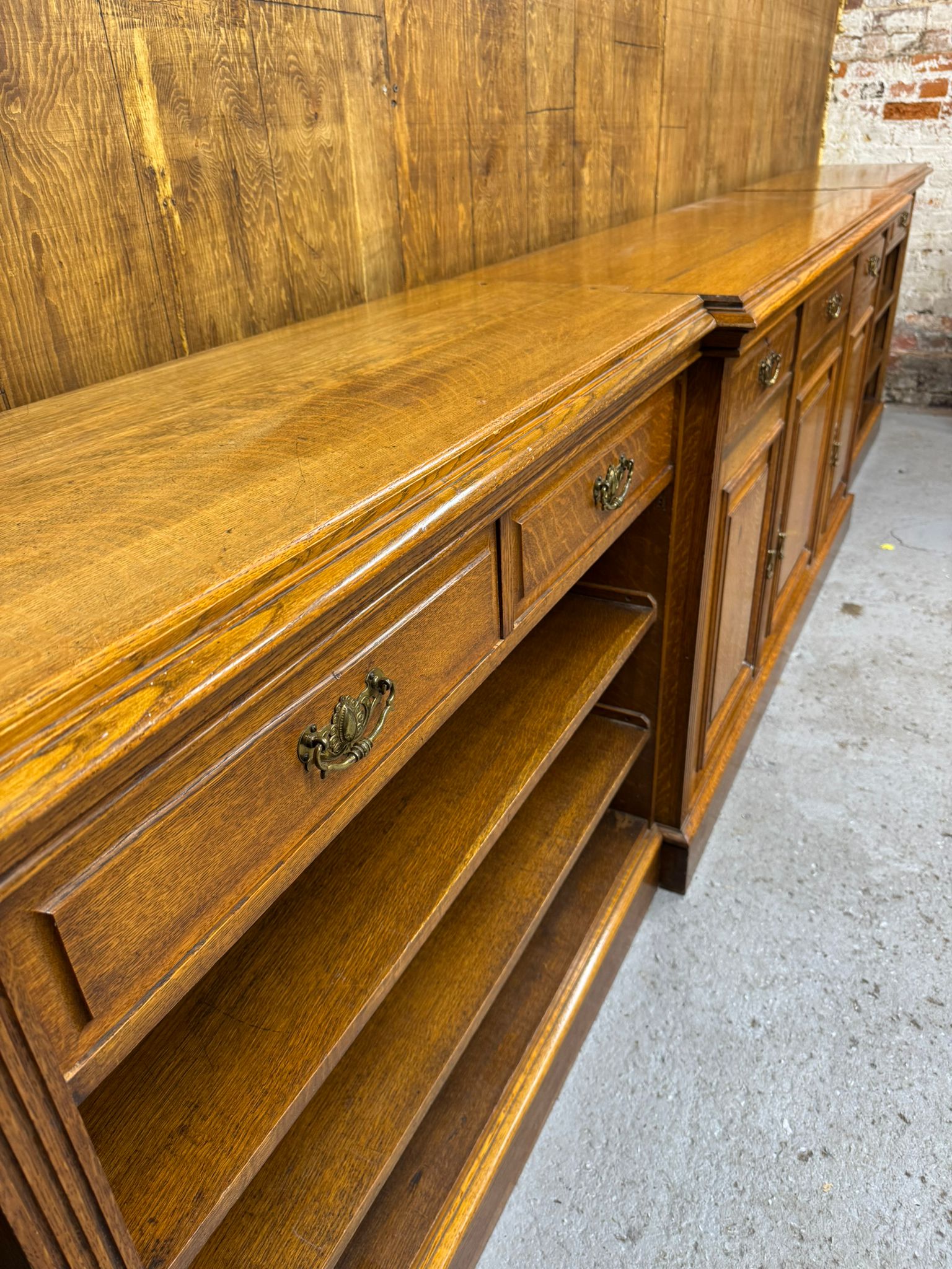 Victorian Solid Oak Breakfront Library Bookcase, TV Stand, Sideboard Display