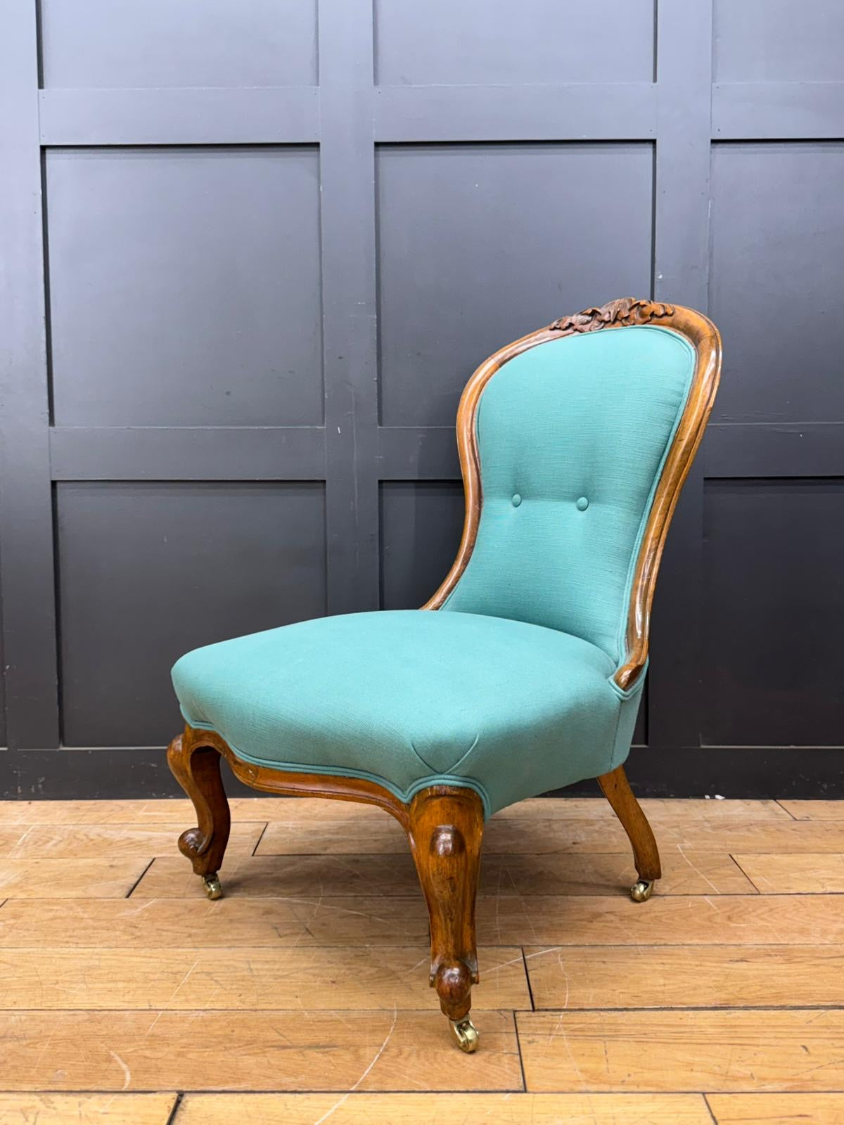 Victorian Walnut Nursing Chair in Green/Teal Upholstery / Bedroom Chair