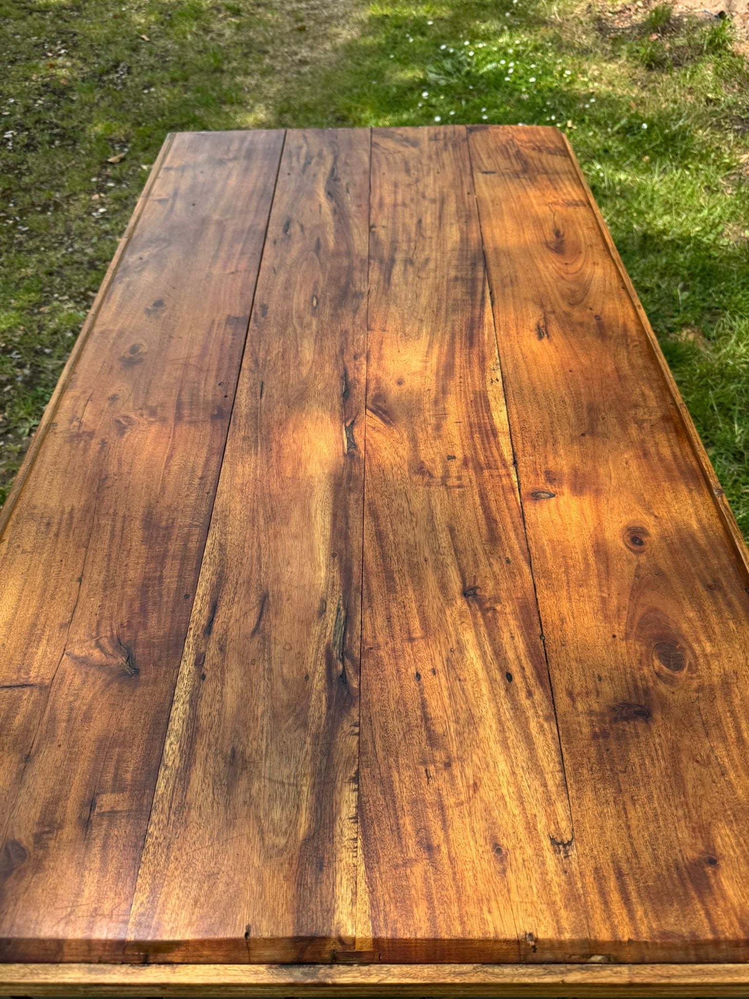 Solid and sturdy. The table has some wear, minor chips, and age-related marks to the corners and base (see photos) that add to its charm. Not freshly restored – it has a well-worn, naturally aged look.
