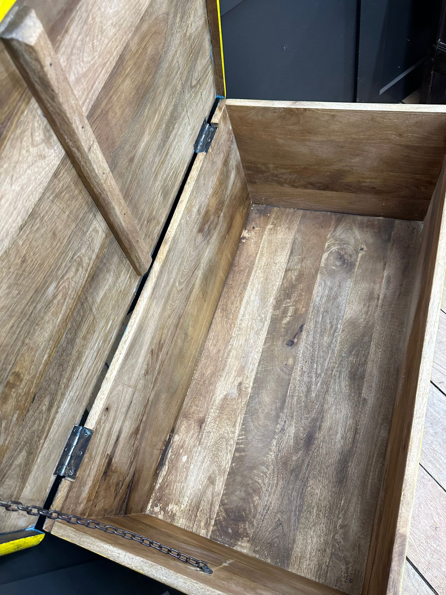 Hand painted with floral and other designs. Truly a stunning statement piece which work perfectly as a coffee table.