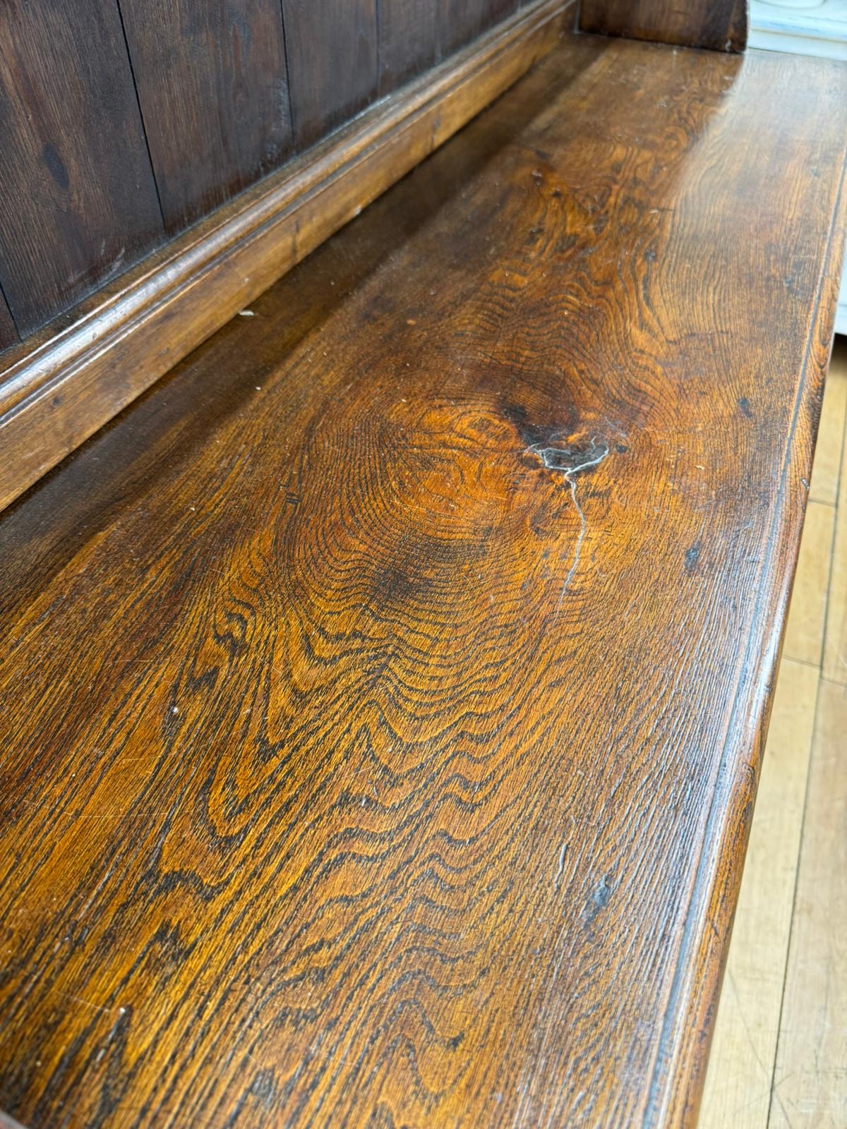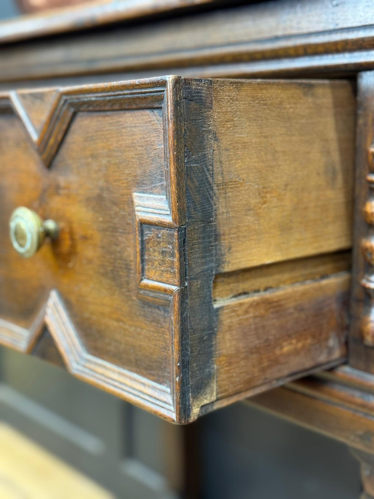 A beautiful antique dresser in the Jacobean style, handcrafted from solid English oak. It features distinctive geometric panelled doors, turned legs, and brass handles — full of character and warmth. Perfect for a farmhouse kitchen, dining room, or country home, offering plenty of storage below and open shelving above for display. Condition: Antique item showing expected signs of age and use, adding to its authentic charm. Minor marks and wear throughout, but solid and sturdy. Please study the photos carefully as they form part of the description. Overall very good for age. Dimensions: • Length: 152 cm • Depth: 46 cm • Height: 217 cm Please be aware that this item does show signs of use, which is to be expected considering its age. These signs of wear add authenticity to the item. We recommend carefully studying the pictures as they form a significant part of the description. Thank you. Feel free to explore our other available items. Our collection includes a variety of pieces ranging from rustic, antique, vintage to industrial. OUR DELIVERY SERVICE We utilize a reliable and experienced courier service for all deliveries. If you have any questions or concerns regarding delivery, please do not hesitate to contact us. Our goal is to deliver most large items within 14 days. Delivery Scheduling: The customer will be contacted by the Courier a few days before delivery to confirm the day and approximate time. Please note that all delivery prices quoted in listings are for England only. Deliveries to other areas such as Scotland, Wales and certain parts of Cornwall are subject to negotiation. Thank you. |