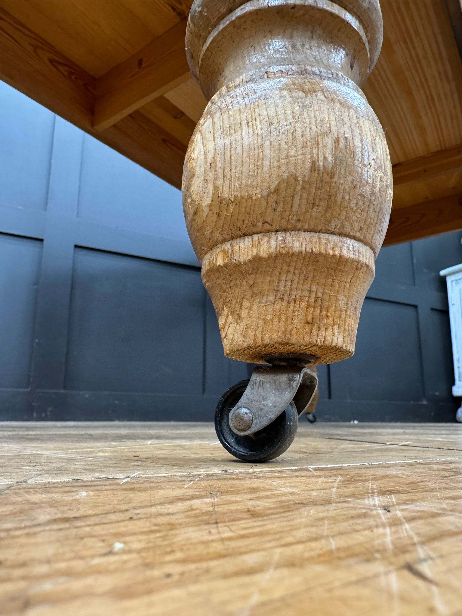 A characterful vintage pine farmhouse table with turned legs. A versatile piece – ideal as a kitchen dining table, large rustic desk, or statement hall table. The table has been placed on castors which could be removed if required. Condition: • Solid and sturdy • Age-related wear, marks and scuffs to the top and legs • Drawer runs smoothly • Old finish with natural patina – shows signs of use consistent with age (Please study photos carefully as they form part of the description.) Dimensions: • Length: 152 cm • Width: 82 cm • Height: 77 cm Please be aware that this item does show signs of use, which is to be expected considering its age. These signs of wear add authenticity to the item. We recommend carefully studying the pictures as they form a significant part of the description. Thank you. Feel free to explore our other available items. Our collection includes a variety of pieces ranging from rustic, antique, vintage to industrial. OUR DELIVERY SERVICE We utilize a reliable and experienced courier service for all deliveries. If you have any questions or concerns regarding delivery, please do not hesitate to contact us. Our goal is to deliver most large items within 14 days. Delivery Scheduling: The customer will be contacted by the Courier a few days before delivery to confirm the day and approximate time. Please note that all delivery prices quoted in listings are for England only. Deliveries to other areas such as Scotland, Wales and certain parts of Cornwall are subject to negotiation. Thank you. |