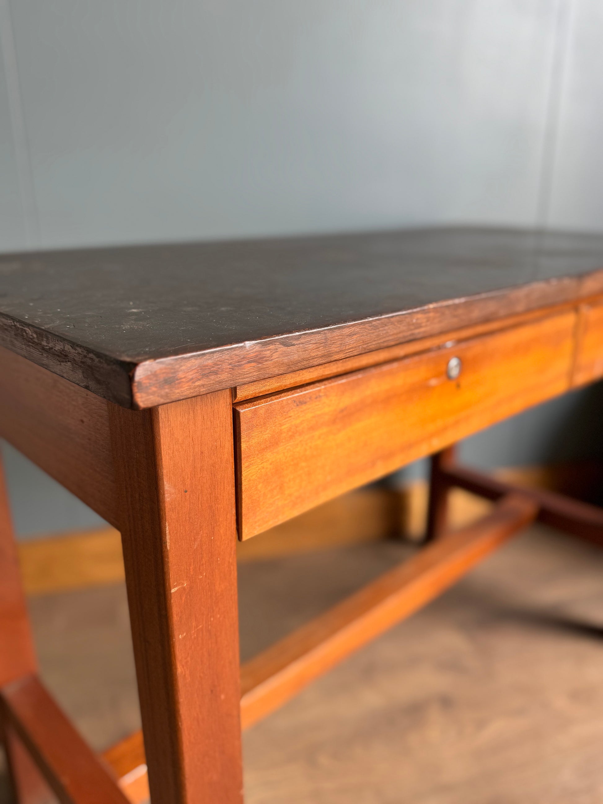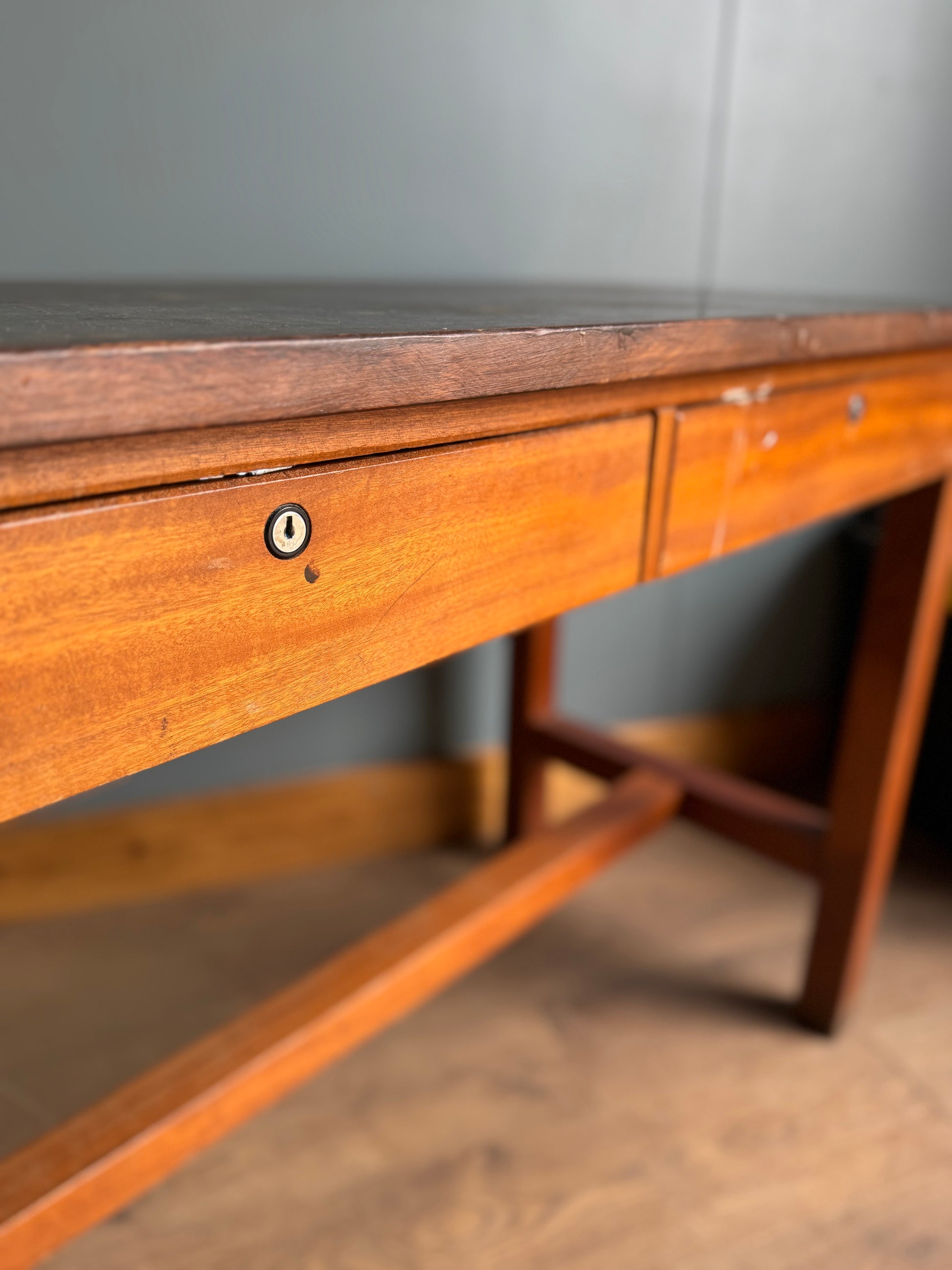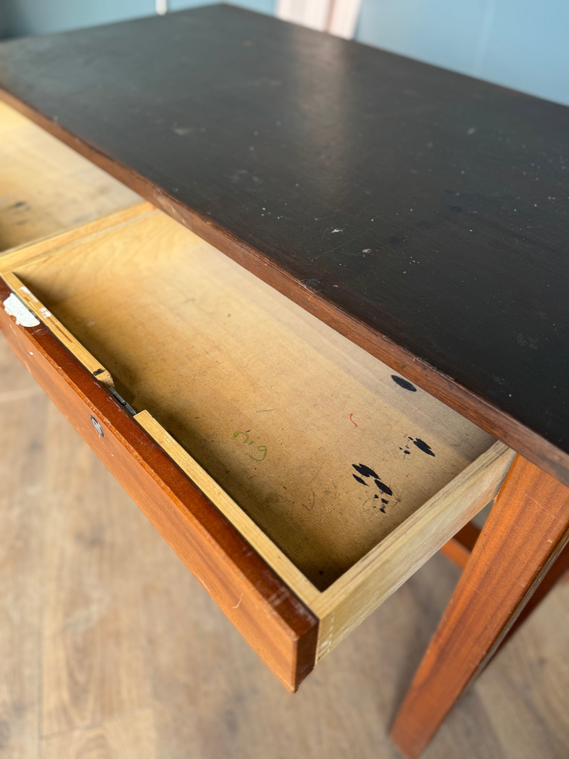 Vintage School Lab Bench Iroko Top Beech Frame Kitchen Island Table Desk drawers